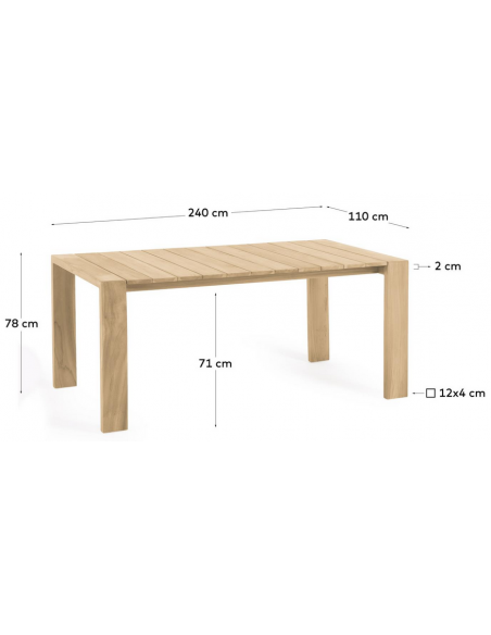 Havebord udført i et design fra LaForma, fremstillet af teaktræ. Bordet måler 78 cm i højden og 240 x 110 cm i bredde og dybde.