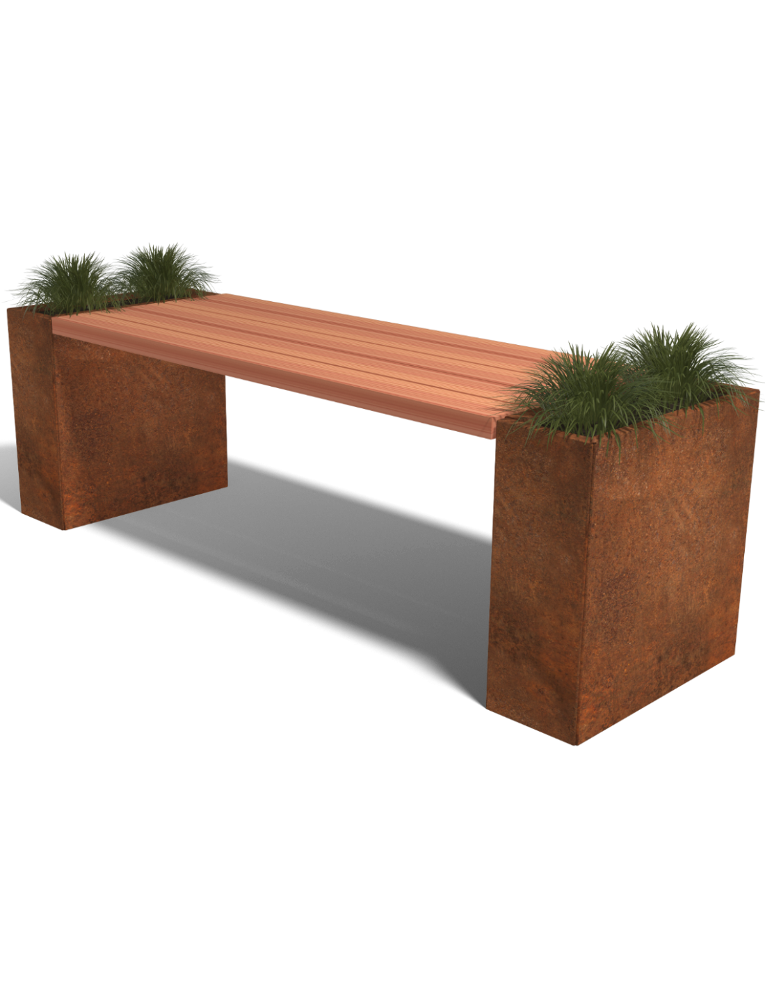 Bordets plantekasser er lavet af Corten-A stålplade af høj kvalitet, der har den unikke egenskab, at den danner et meget tæt oxidlag (rustlag), som er umuligt at ruste igennem. På grund af det tætte oxidlag er det dybere materiale afskærmet for ilt, så oxidationen bremses betydeligt, mens korrosionen fortsætter. Bordet i cortenstål leveres urustet, i den grå metalfarve. Det brune/orange rustlag dannes inden for få uger til et par måneder og ingen behandling er påkrævet.