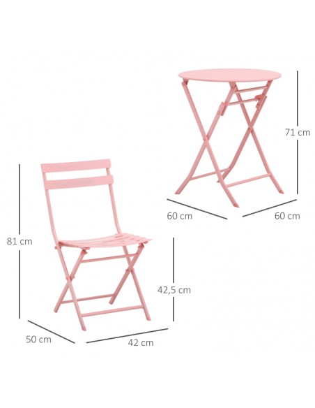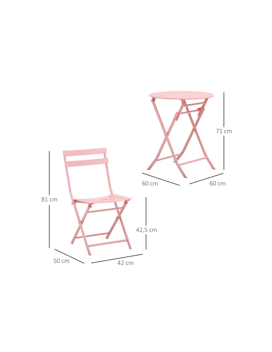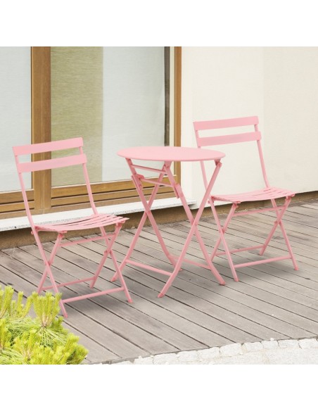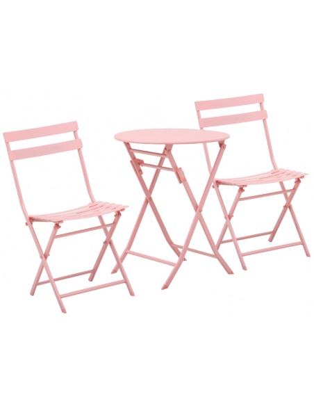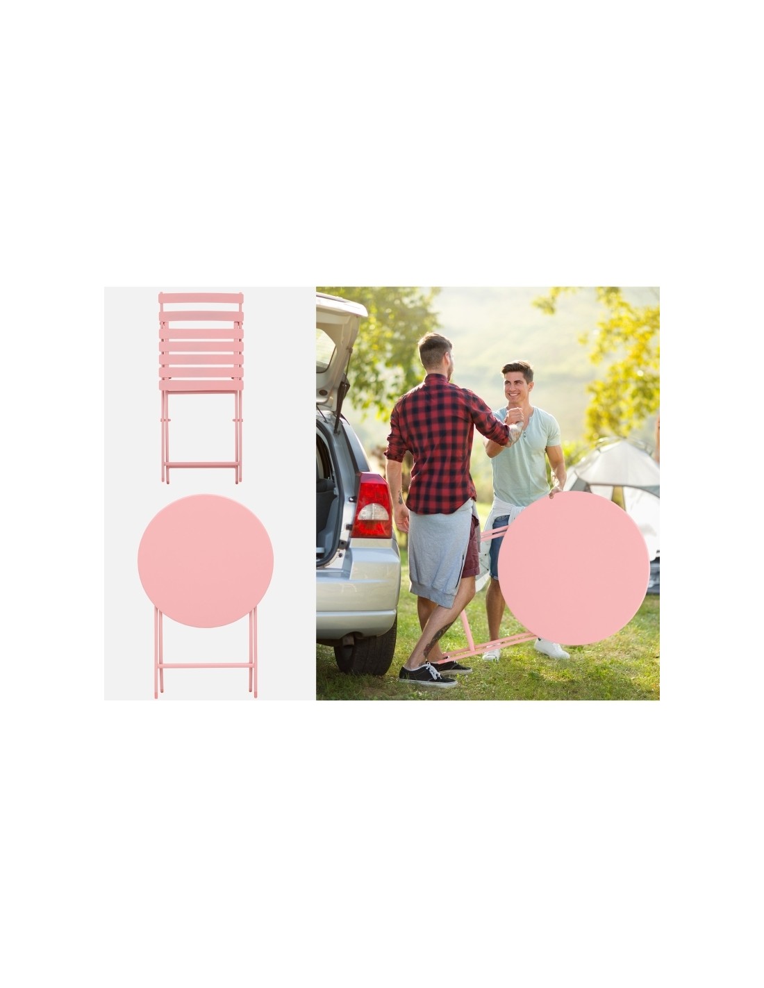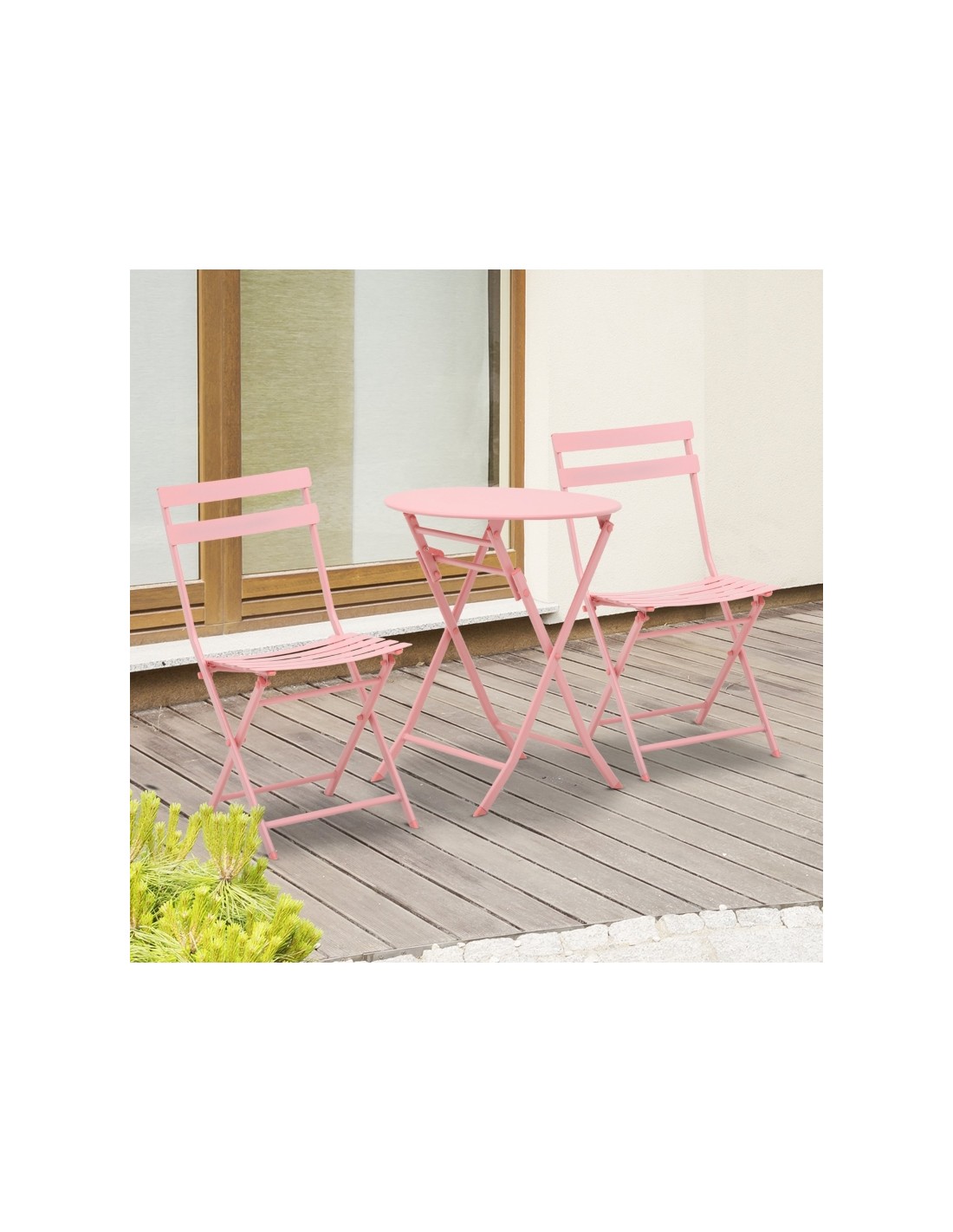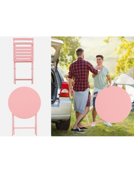 Bistrosæt med 2 klapstole og 1 klapbord i metal - Rosa