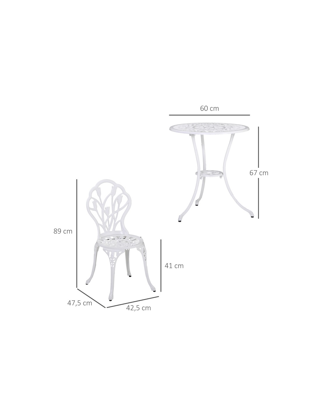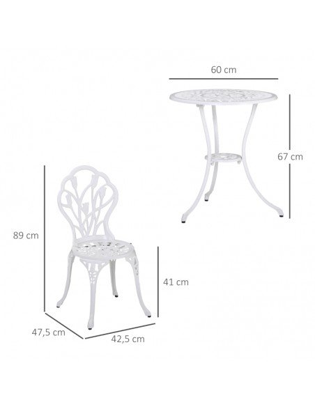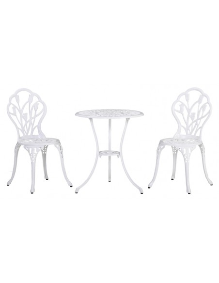 Bistrosæt med 2 stole og 1 bord i aluminium - Antik hvid
