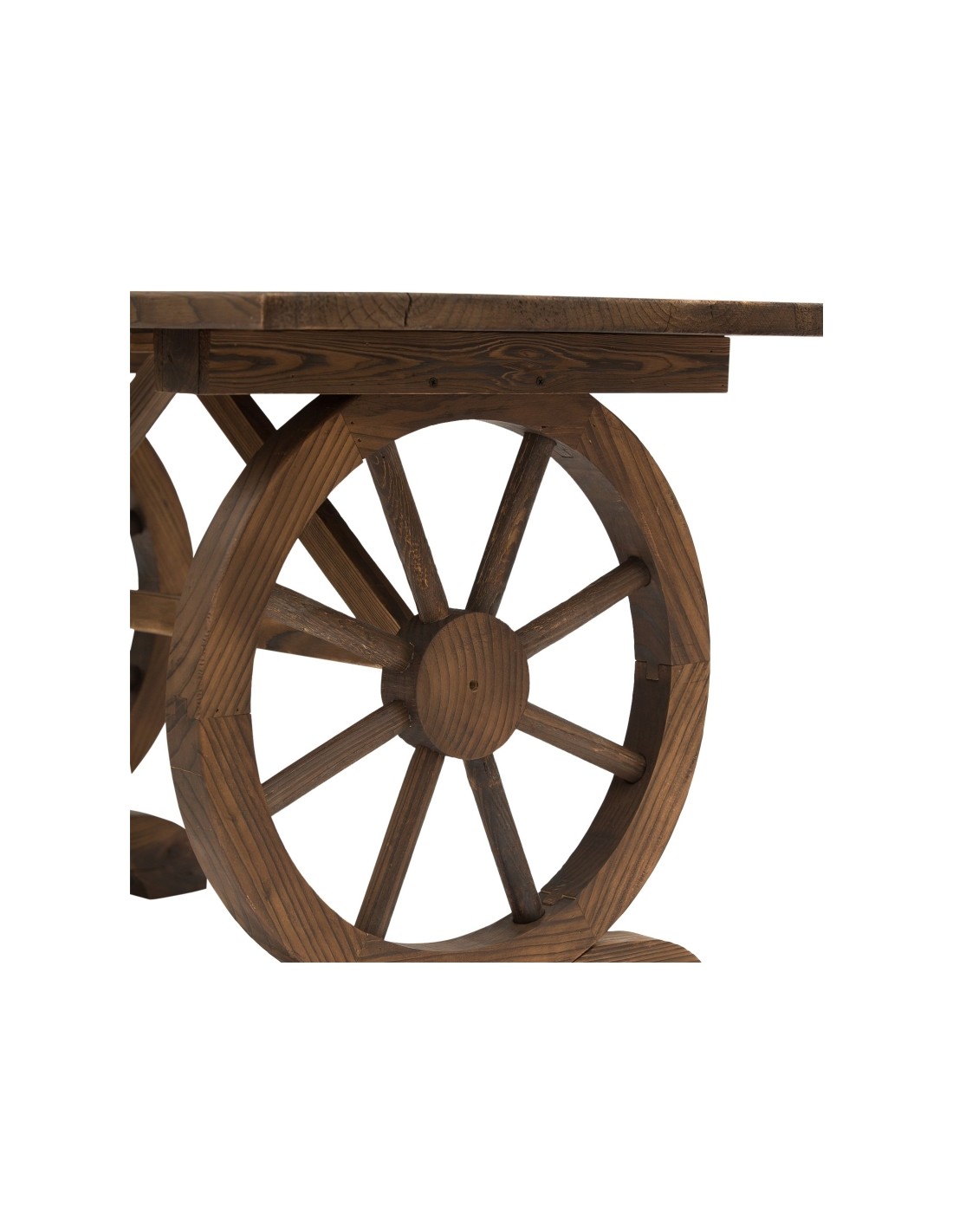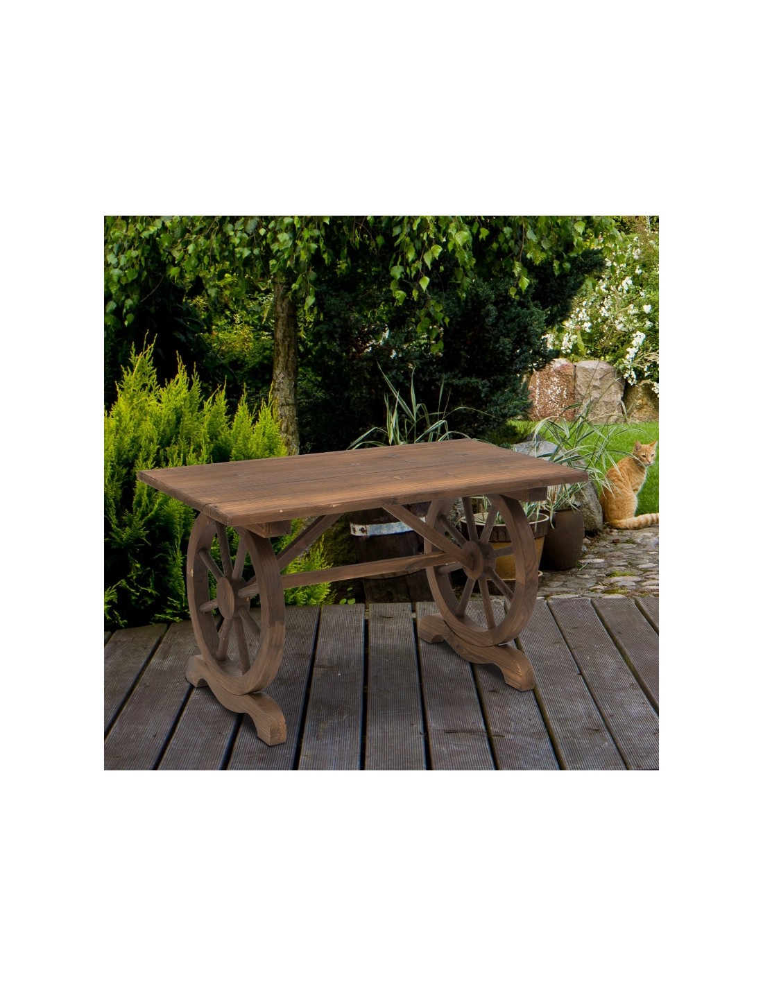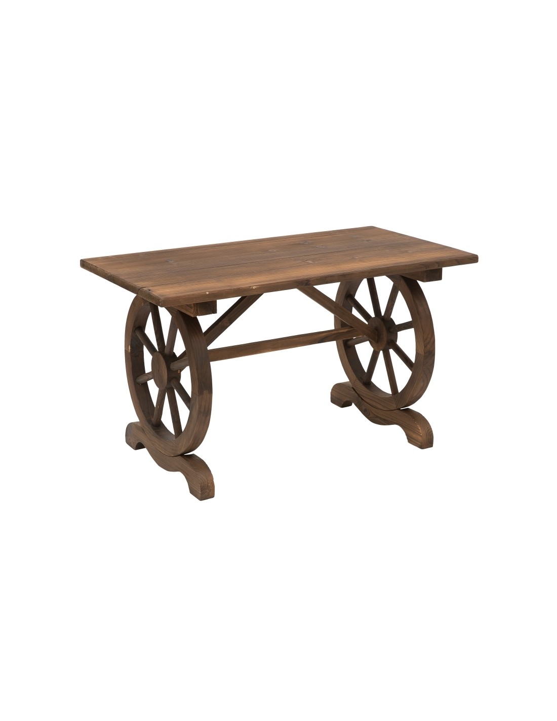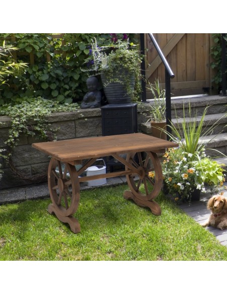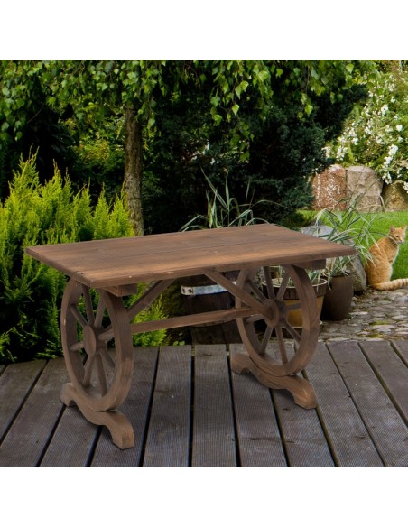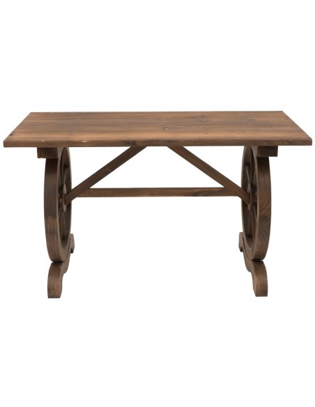 Havebord udført i et design af antik brunlakeret fyrretræ. Havebordet måler 65 cm i højden og 113 x 60 cm i bredde og dybde.