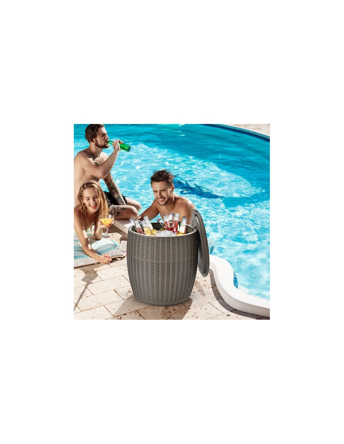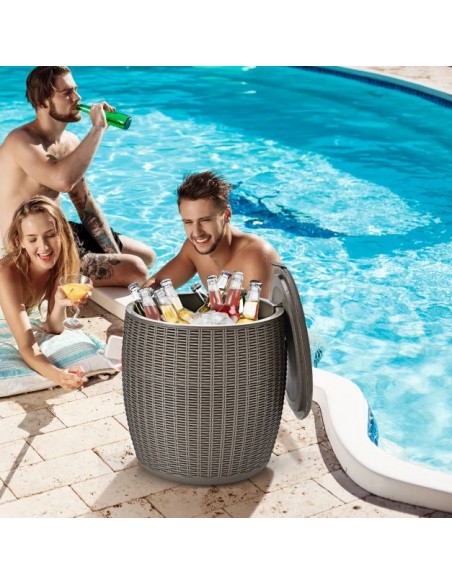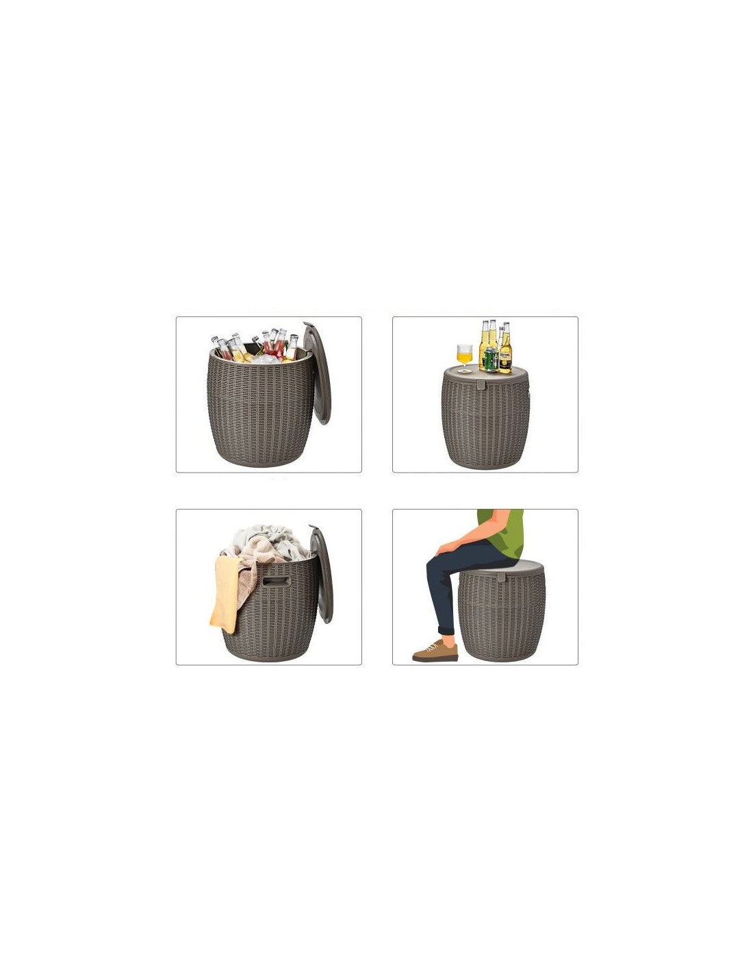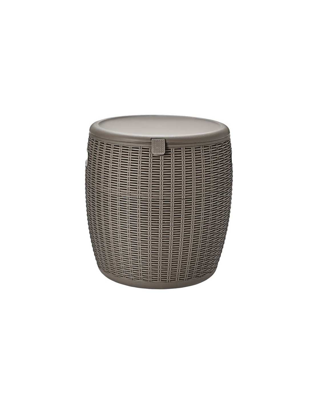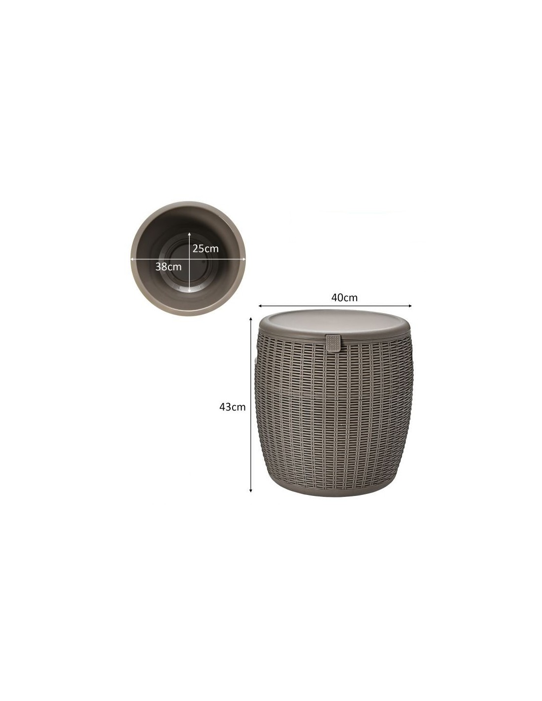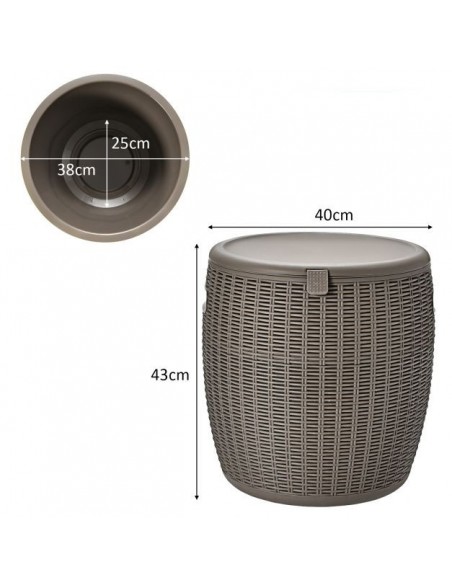 Havebord udført i et design af brun polyrattan og kunststof. Havebordet kan anvendes til flere formål og måler 43 cm i højden og 40 cm i diameter.