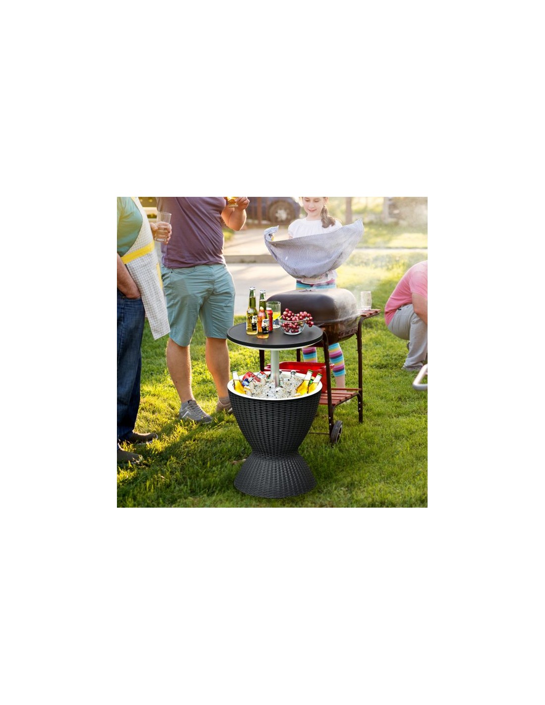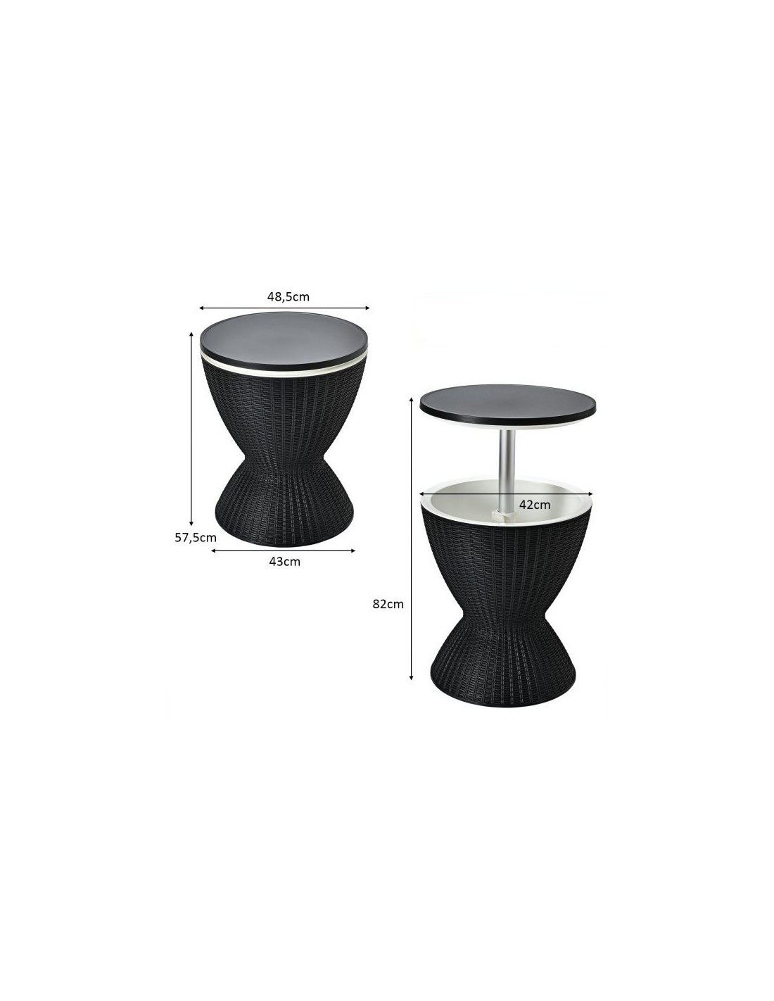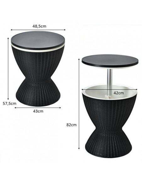 Havebord udført i et design af sort polyrattan og kunststof. Havebordet kan anvendes til flere formål og måler 57,5 - 82 cm i højden og 48,5 cm i diameter.