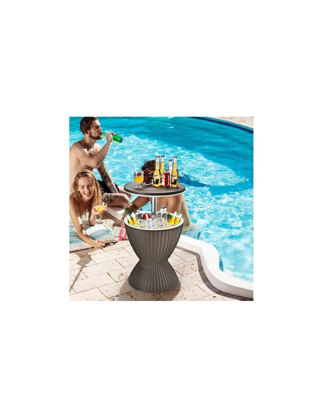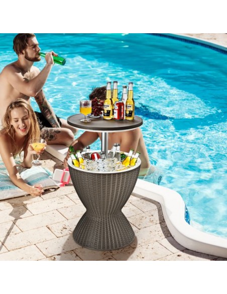 Havebord udført i et design af brun polyrattan og kunststof. Havebordet kan anvendes til flere formål og måler 57,5 - 82 cm i højden og 48,5 cm i diameter.