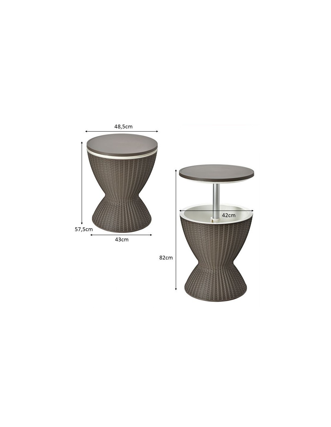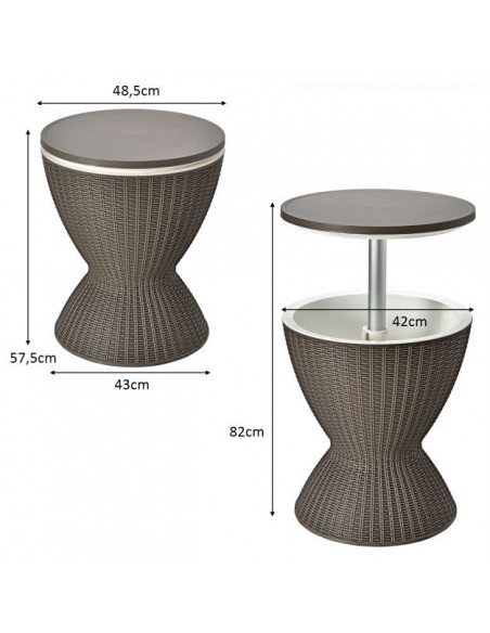 Havebord i polyrattan og kunststof H57,5 - 82 x Ø48,5 cm - Brun