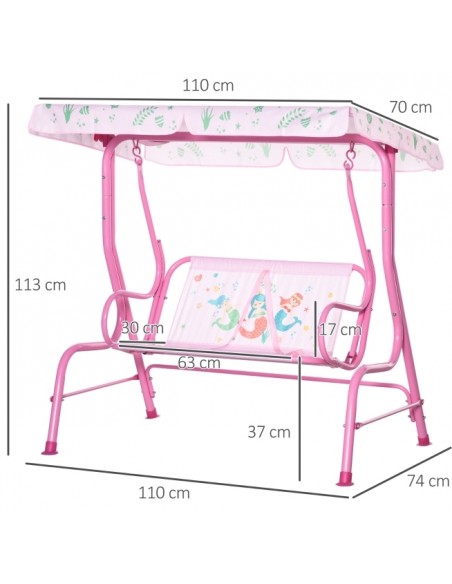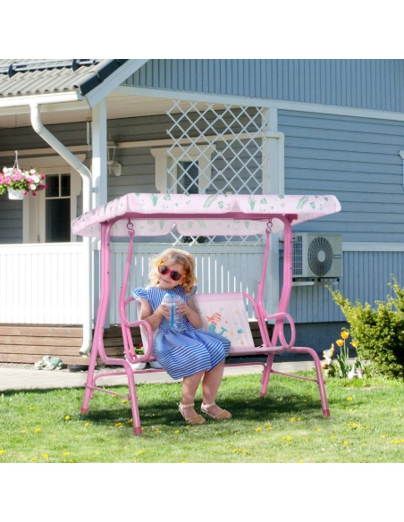 Havegynge med skygge til børn H113 x B110 cm - Rosa