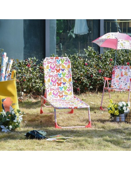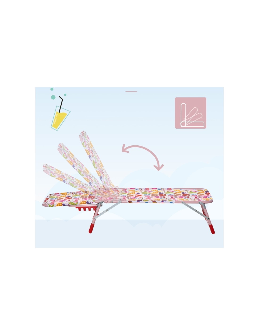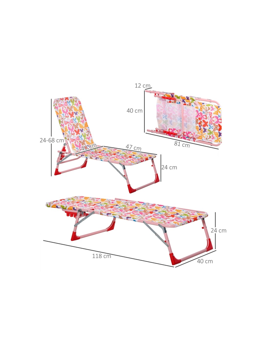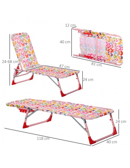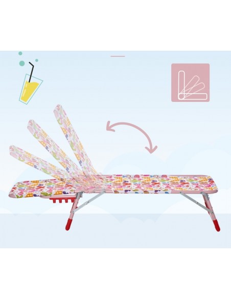 Solseng til børn. Solsengen kan klappes sammen, således den er lettere at flytte eller opbevare. Solsengen måler 24 - 68 cm i højden og 118 x 40 cm i bredde og dybde.