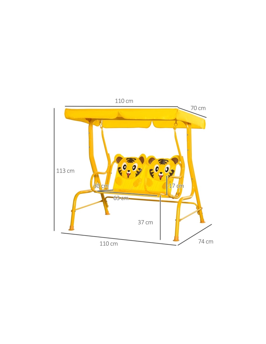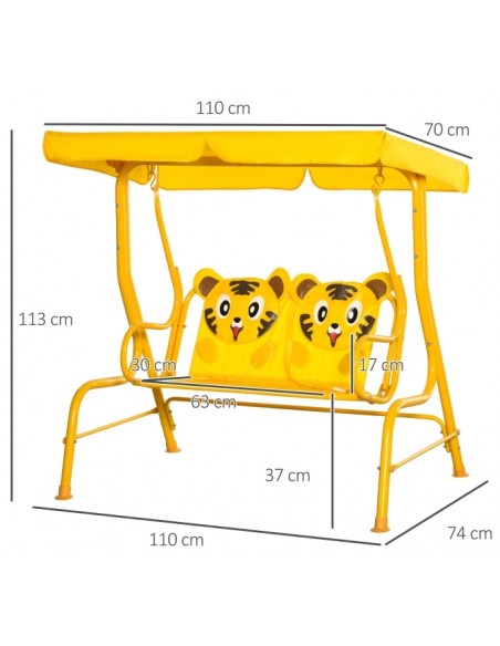 Havegynge med skygge til børn H113 x B110 cm - Gul