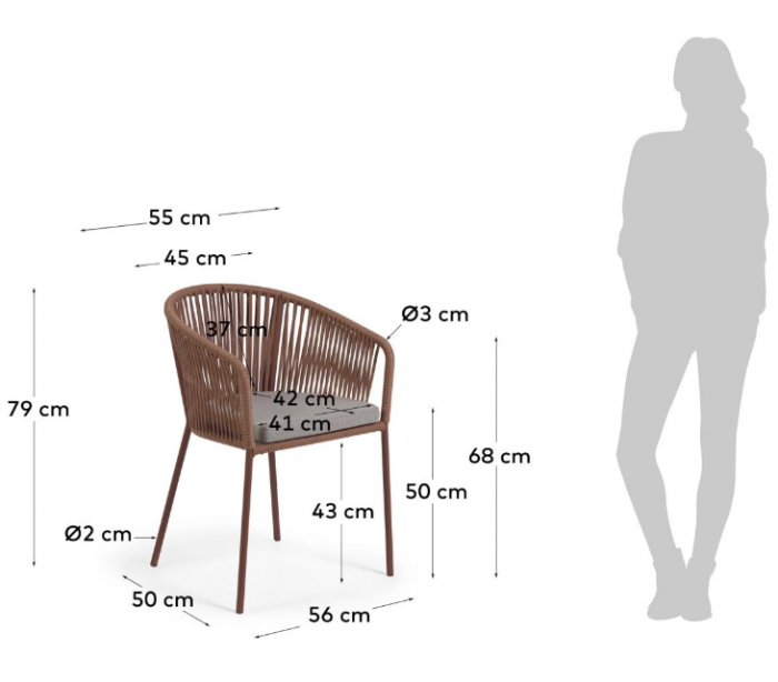 4 x Yanet havestole i reb H79 cm - Terracotta