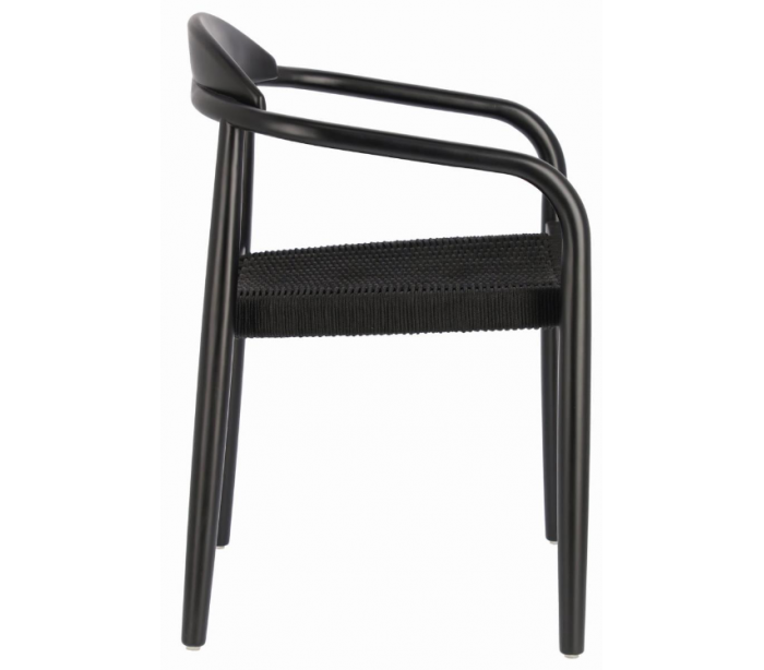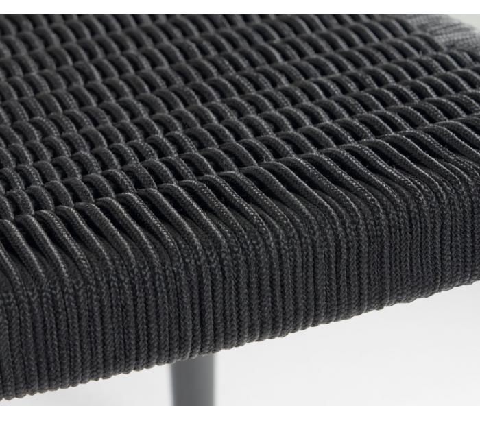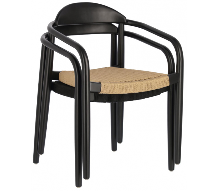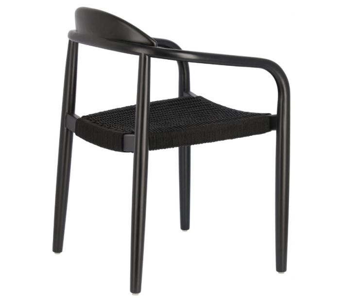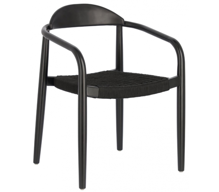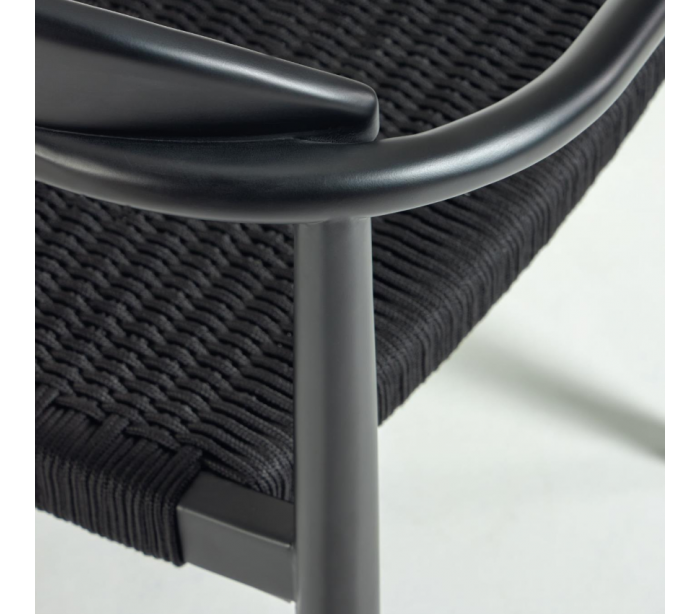 Sæt med 4 havestole i et design fra LaForma. Stolene er fremstillet i sortlakeret eucalyptustræ og sort reb. Stolene måler 78 cm i højden over ryggen og 56 x 53 cm i bredde og dybde.
