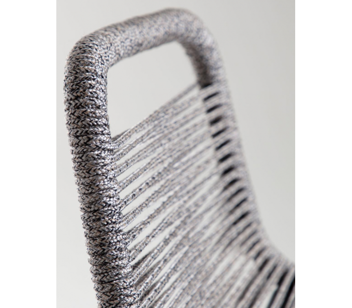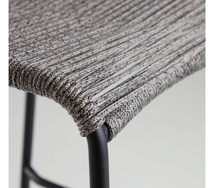 Sæt med 4 bar havestole i et design fra LaForma. Stolene er fremstillet i grå vejrbestandigt reb og med stel i sortlakeret metal. Stolene måler 100 cm i højden over ryggen og 53 x 53 cm i bredde og dybde.