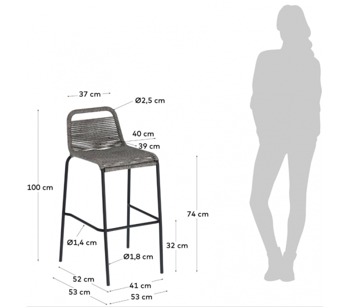 4 x Glenville bar havestole i reb H100 cm - Sort/Grå