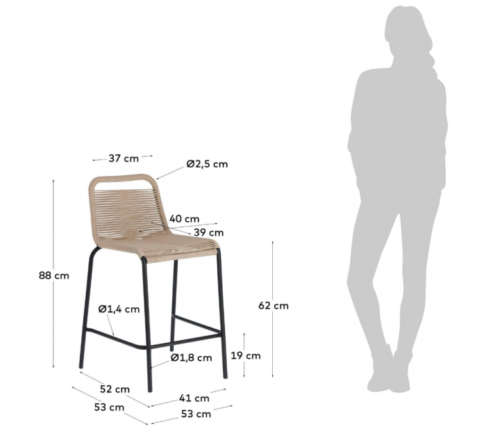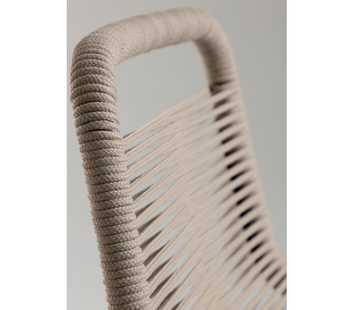 Sæt med 4 bar havestole i et design fra LaForma. Stolene er fremstillet i beige vejrbestandigt reb og med stel i sortlakeret metal. Stolene måler 88 cm i højden over ryggen og 53 x 53 cm i bredde og dybde.