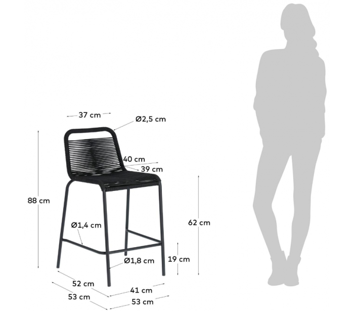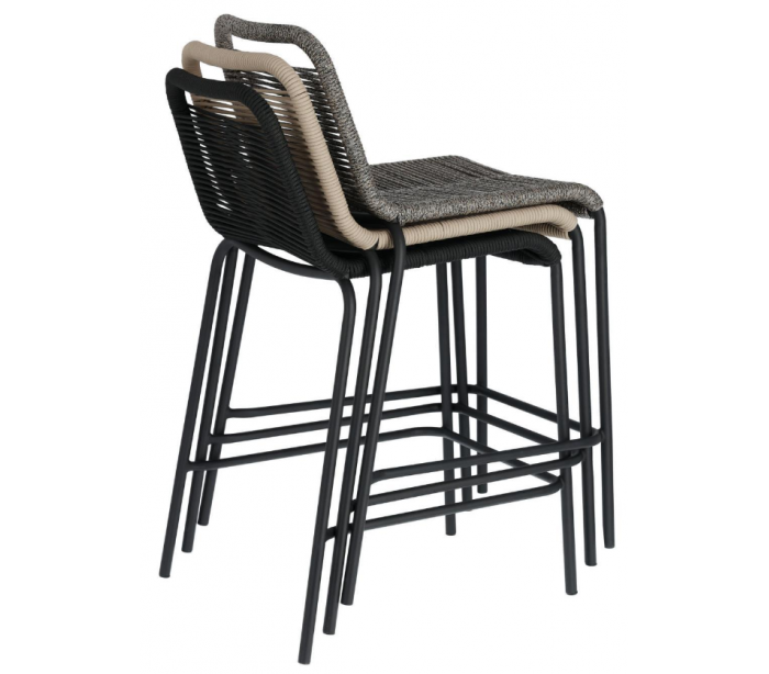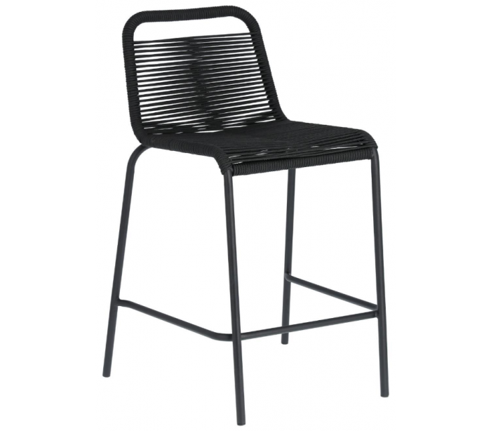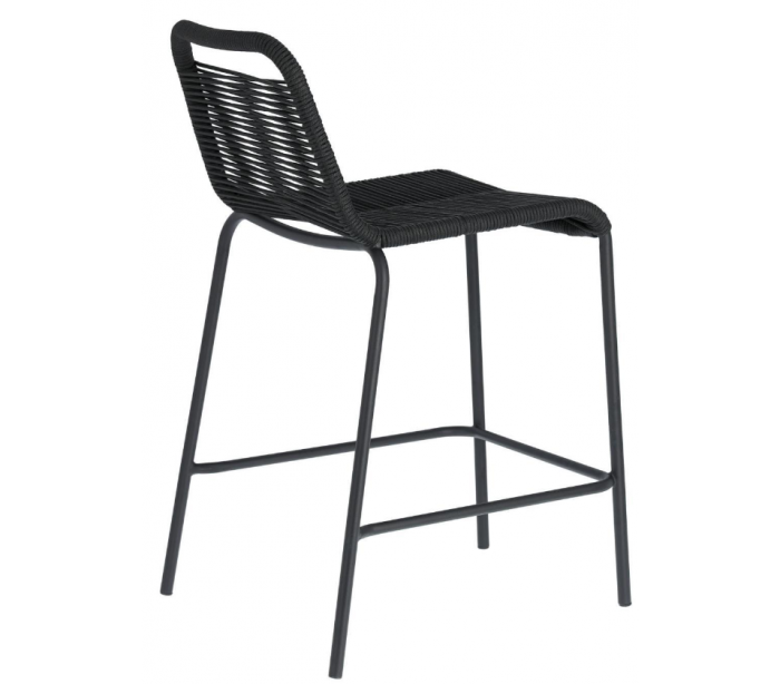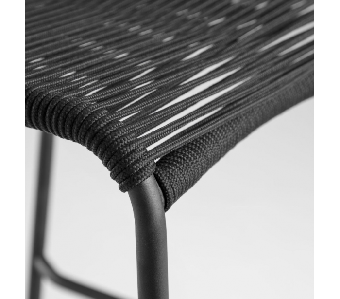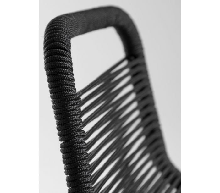 Sæt med 4 bar havestole i et design fra LaForma. Stolene er fremstillet i sort vejrbestandigt reb og med stel i sortlakeret metal. Stolene måler 88 cm i højden over ryggen og 53 x 53 cm i bredde og dybde.