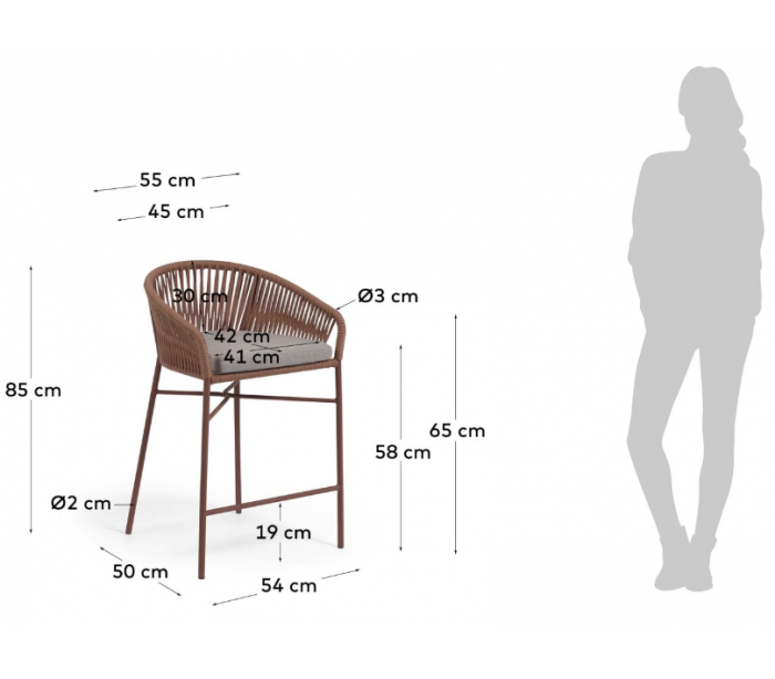 2 x Yanet bar havestole i reb H85 cm - Terracotta