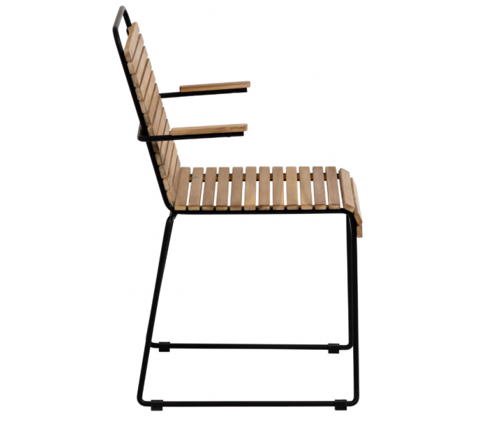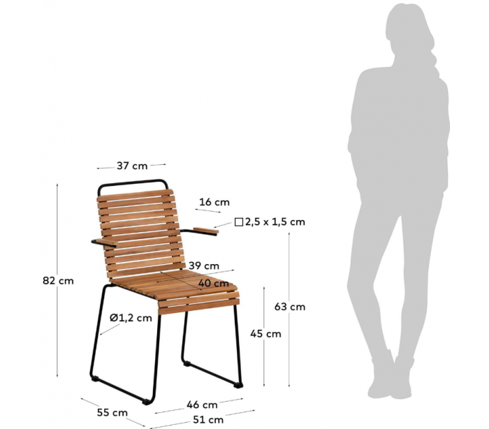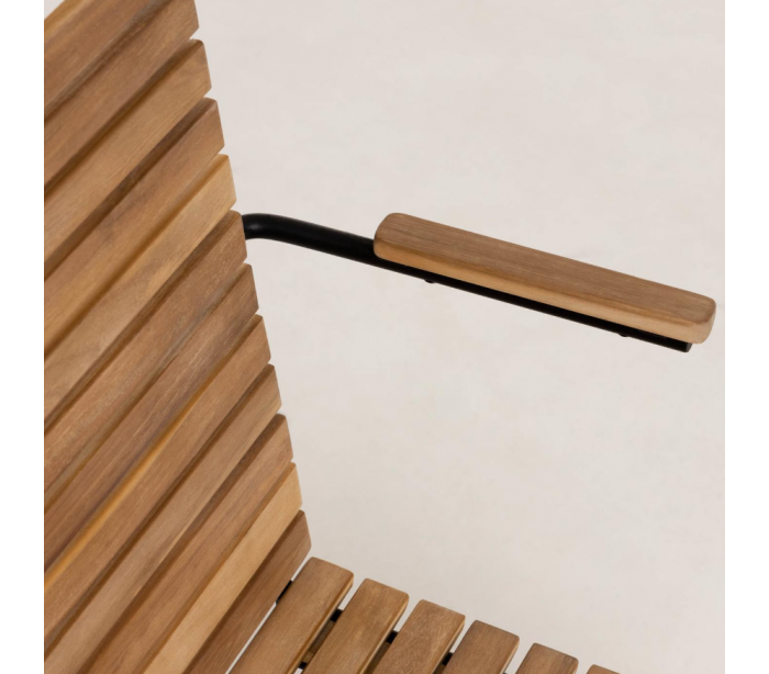 Sæt med 2 havestole i et design fra LaForma. Stolene er fremstillet i naturfarvet akacietræ og sortlakeret metal. Stolene måler 82 cm i højden over ryggen og 51 x 55 cm i bredde og dybde.