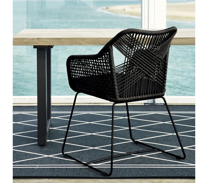 Havestol i reb og aluminium H86 cm - Sort/Sort