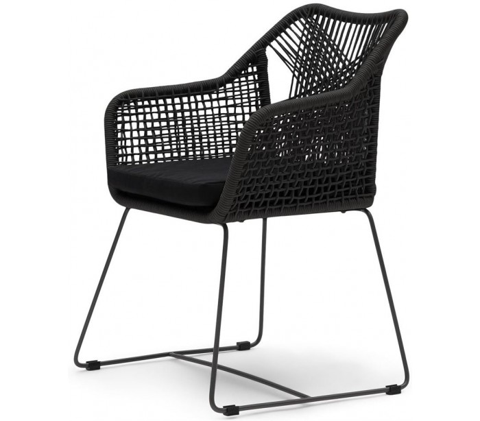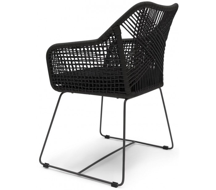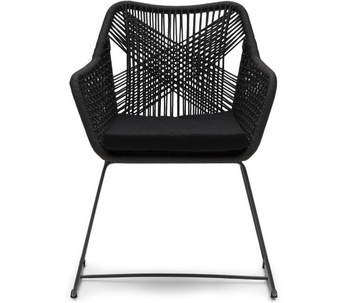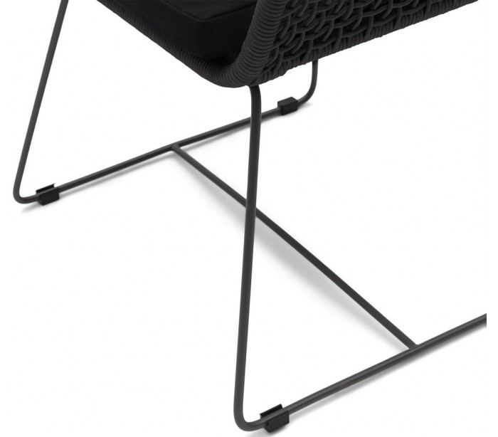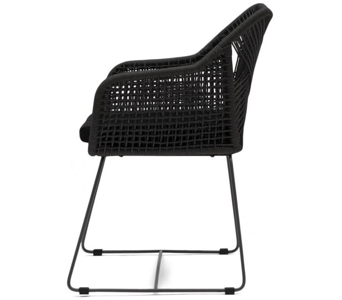 Riviera Maison havestol i et design af sortlakeret aluminium og sortfarvet reb og med hynde i sort polyester. Havestolen måler 86 cm i højden og 60 cm i bredden. Stolen tåler at stå ude hele sommeren, men ved regnvejr anbefaler vi at de opbevares tørt.