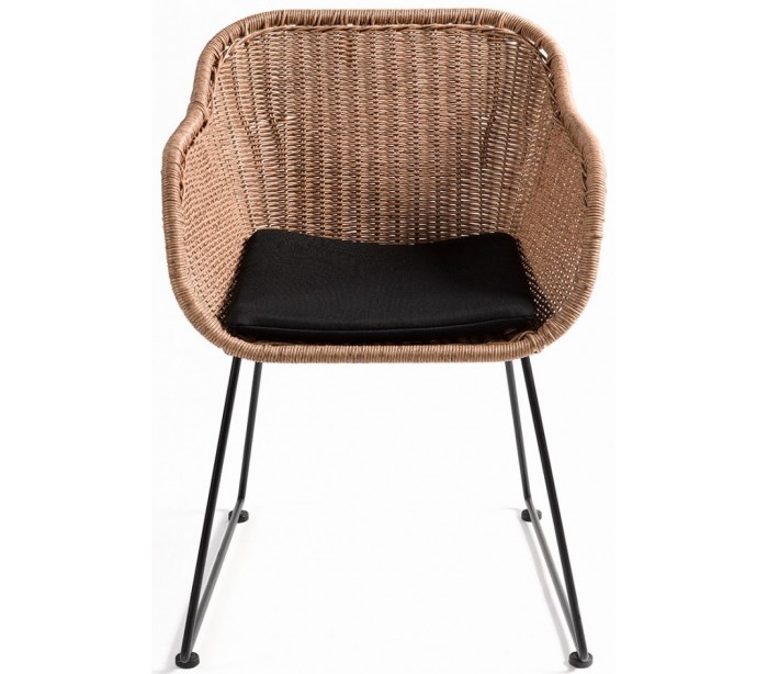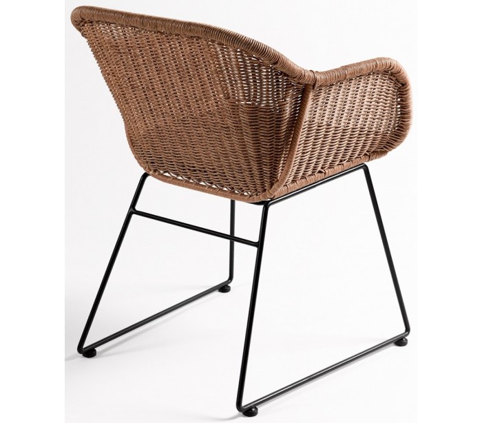 Havestol udført i et design i naturfarvet syntetisk rattan og sortlakeret metal, med hynde i sort polyester. Havestolen måler 82 cm i højden over ryggen og med siddehøjde på 46 cm.
