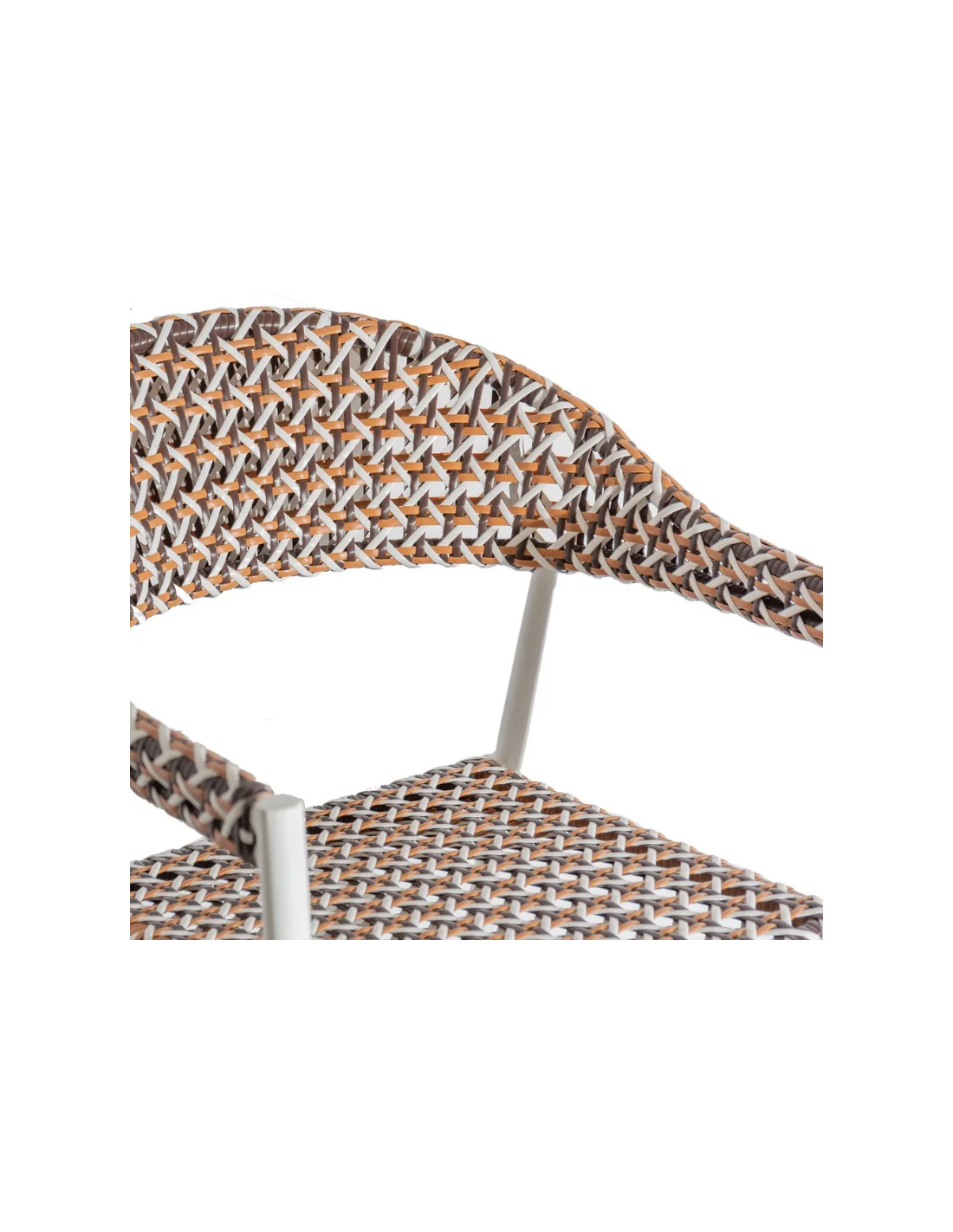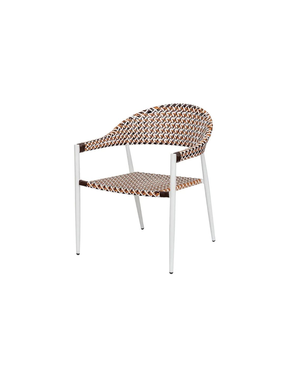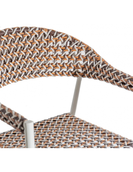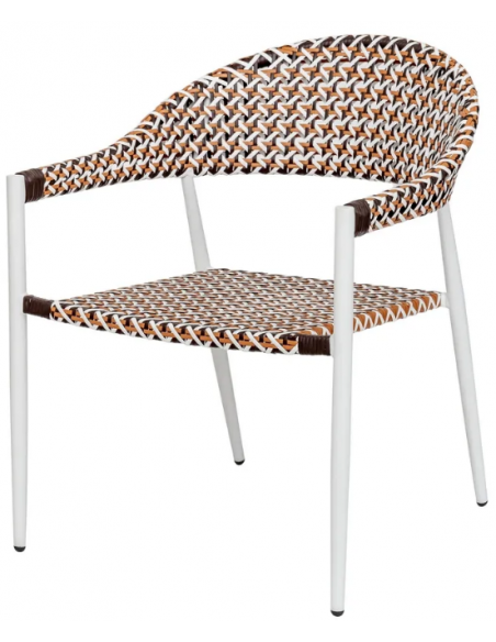 Havestol udført i et design af hvidlakeret aluminium og multifarvet syntetisk rattan. Havestolen måler 80 cm i højden og 62 cm i bredden. Stolen tåler at stå ude hele sommeren og er resistent overfor regn og fugt.