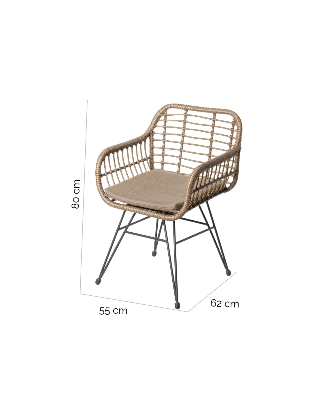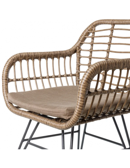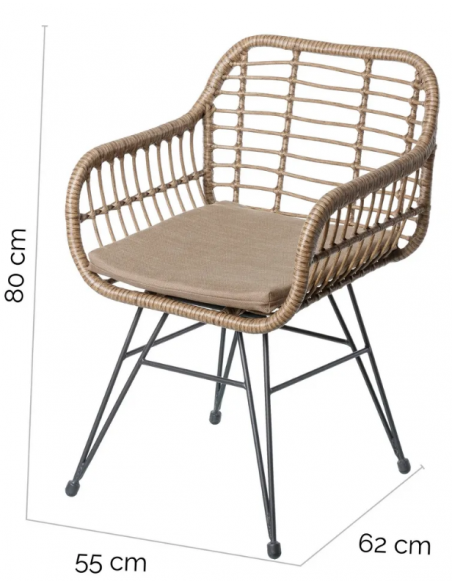 Havestol udført i et design af antracit lakeret aluminium og brunt syntetisk rattan. Havestolen måler 80 cm i højden og 55 cm i bredden. Stolen tåler at stå ude hele sommeren og er resistent overfor regn og fugt.