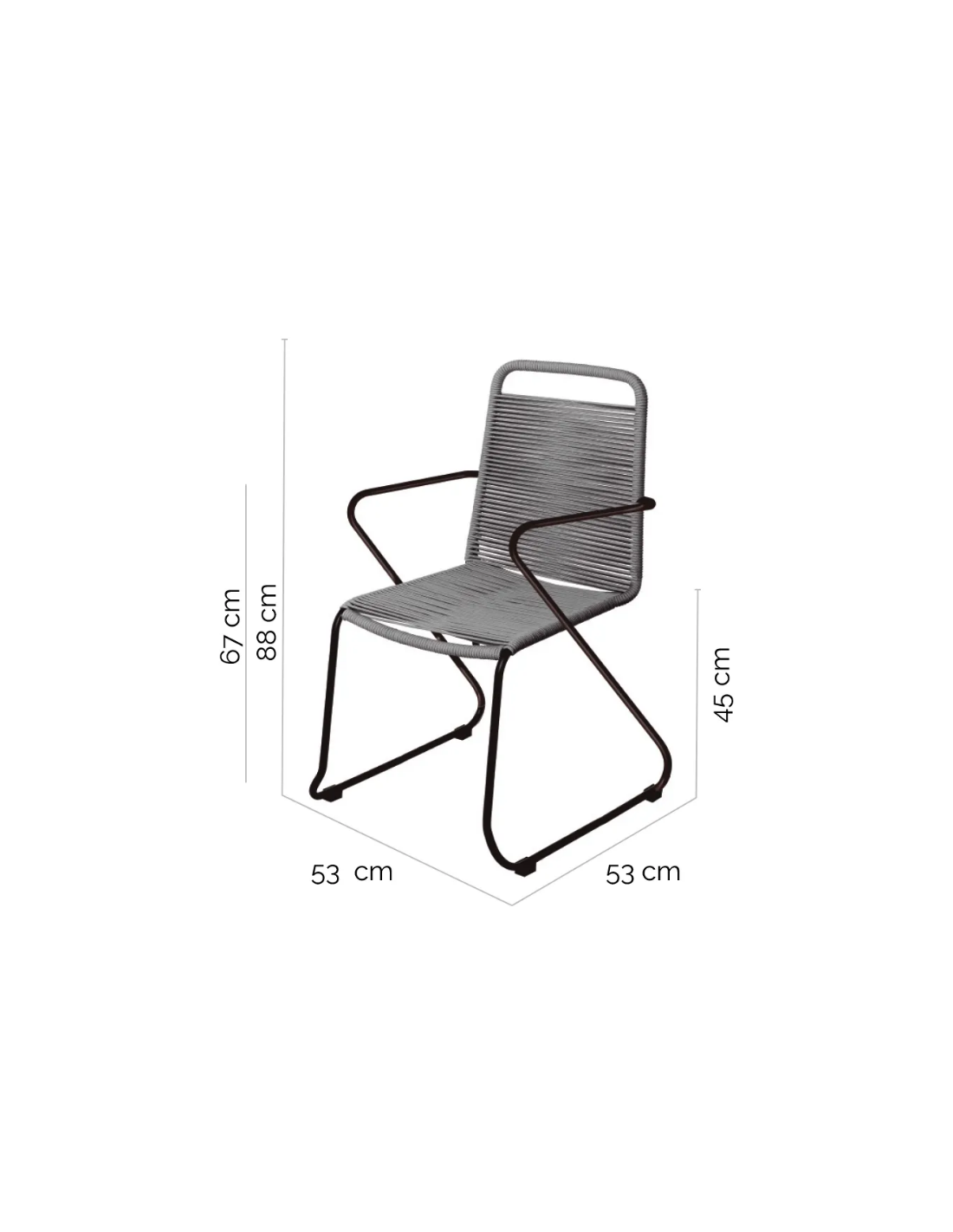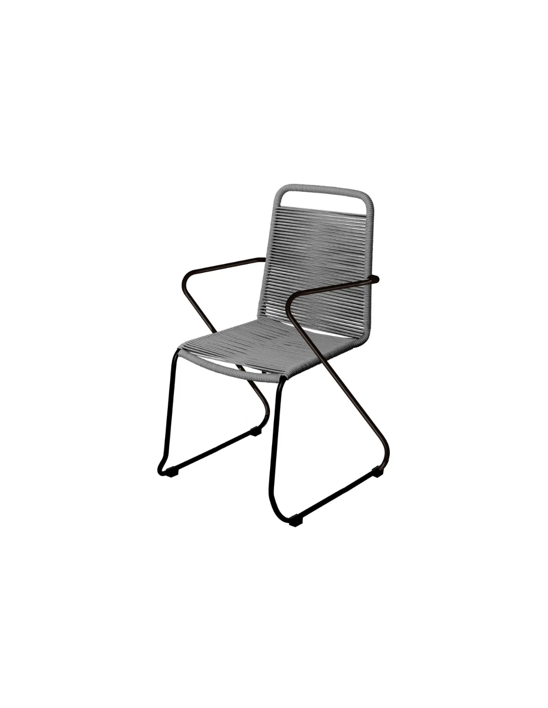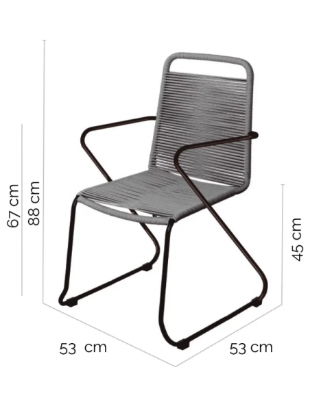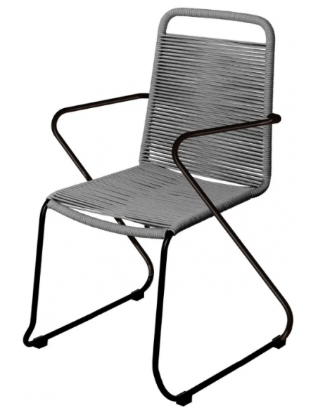 Havestol udført i et design af sortlakeret aluminium og mørkegrå fiberreb. Havestolen måler 88 cm i højden og 53 cm i bredden. Stolen tåler at stå ude hele sommeren og er resistent overfor regn og fugt.