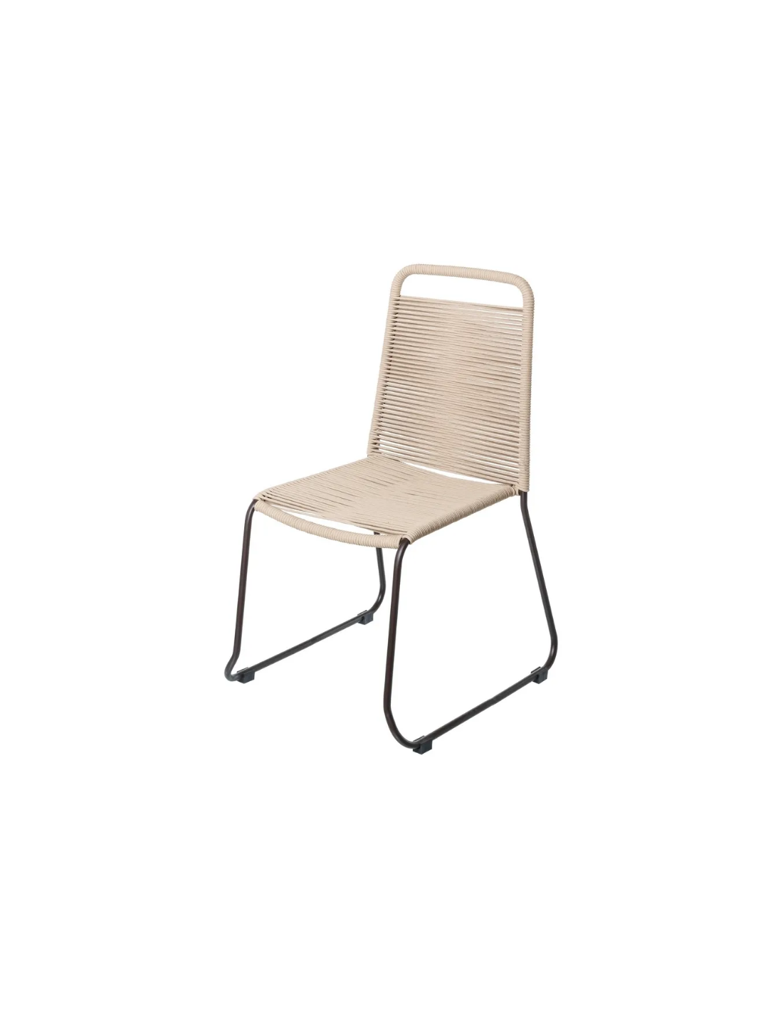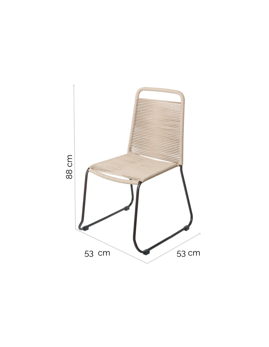 Havestol udført i et design af sortlakeret aluminium og taupefarvet fiberreb. Havestolen måler 88 cm i højden og 53 cm i bredden. Stolen tåler at stå ude hele sommeren og er resistent overfor regn og fugt.
