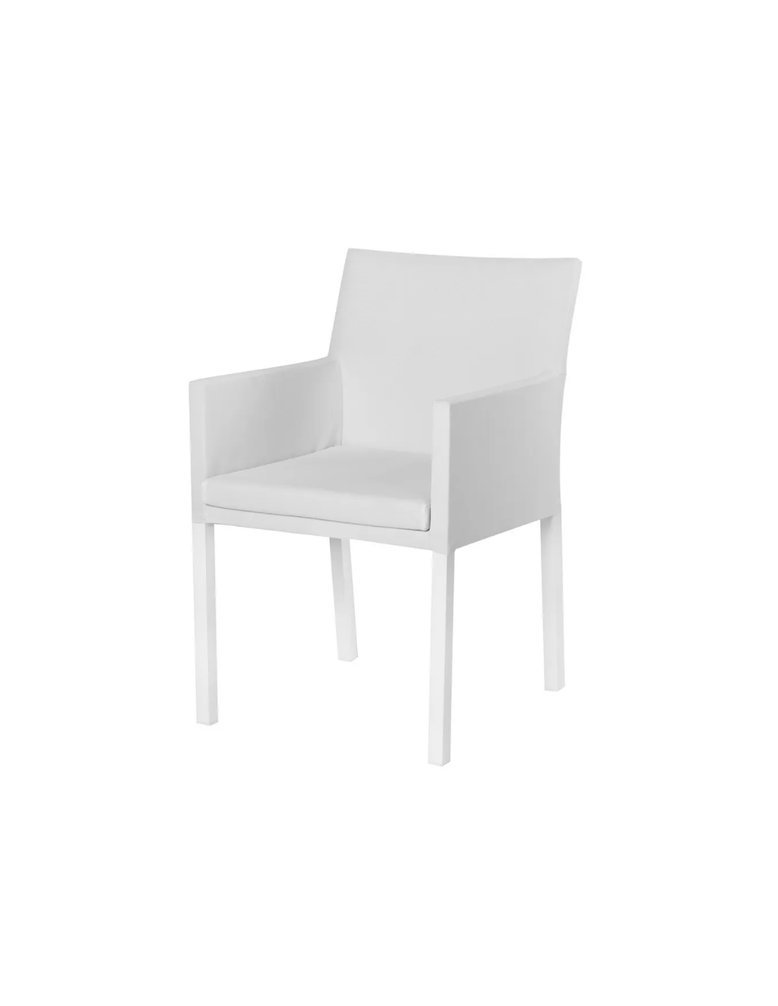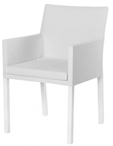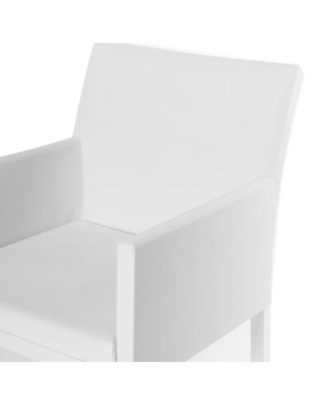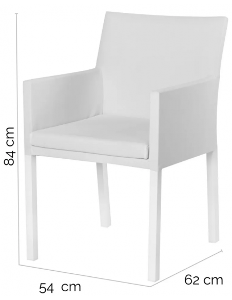 Havestol udført i et design af hvidlakeret aluminium og hvidt vandafvisende textilene (vandafvisende, ikke vandtæt). Havestolen måler 84 cm i højden og 54 cm i bredden. Stolen tåler at stå ude hele sommeren og er resistent overfor regn og fugt.