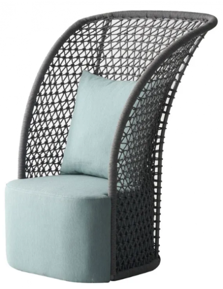 SORA Loungestol med skammel i syntetisk rattan og olefin H119 cm - Grå/Azurblå