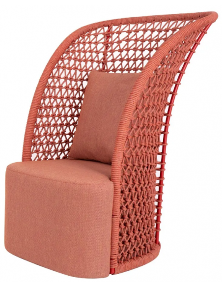 SORA Loungestol med skammel i syntetisk rattan og olefin H119 cm - Paprika/Paprika