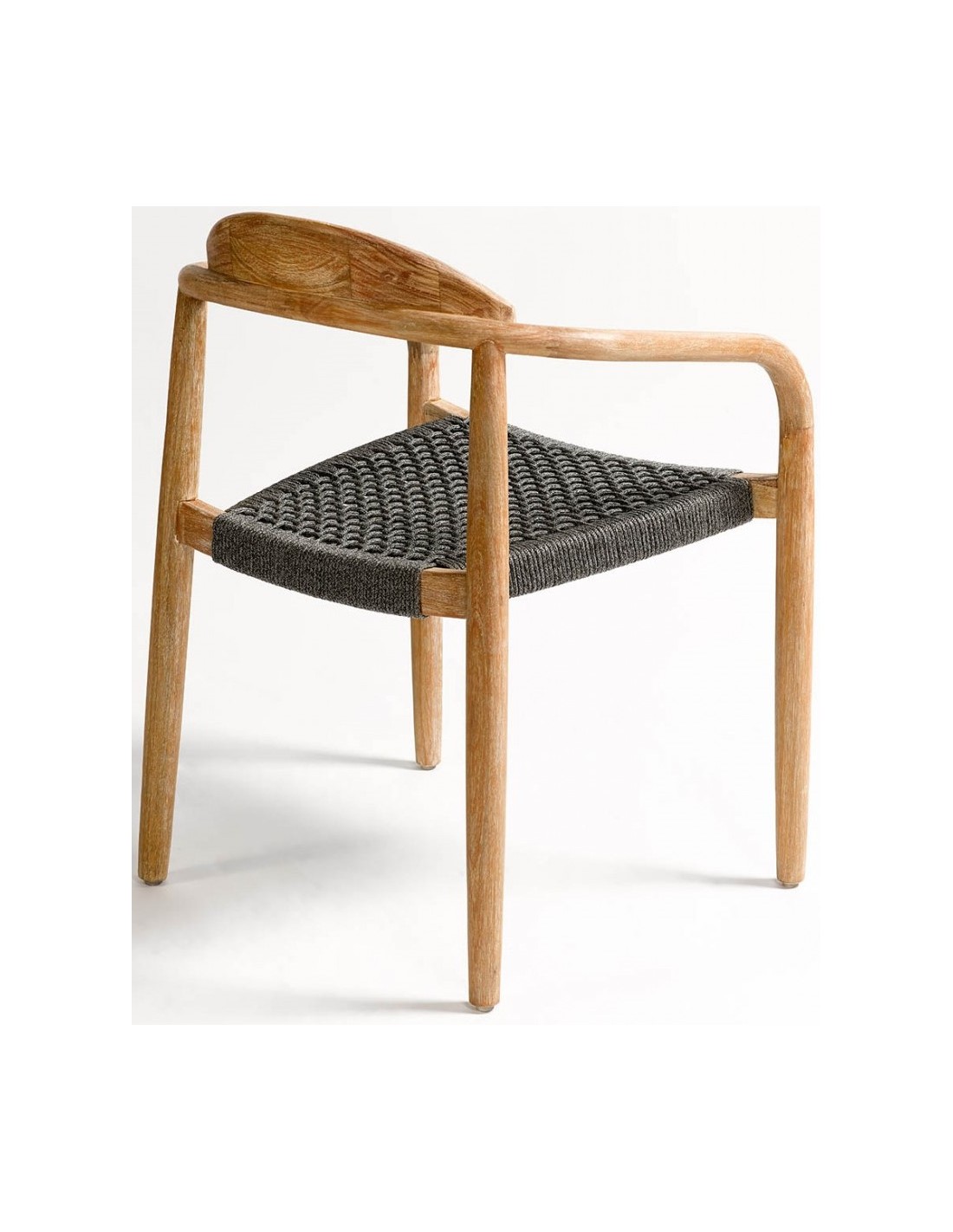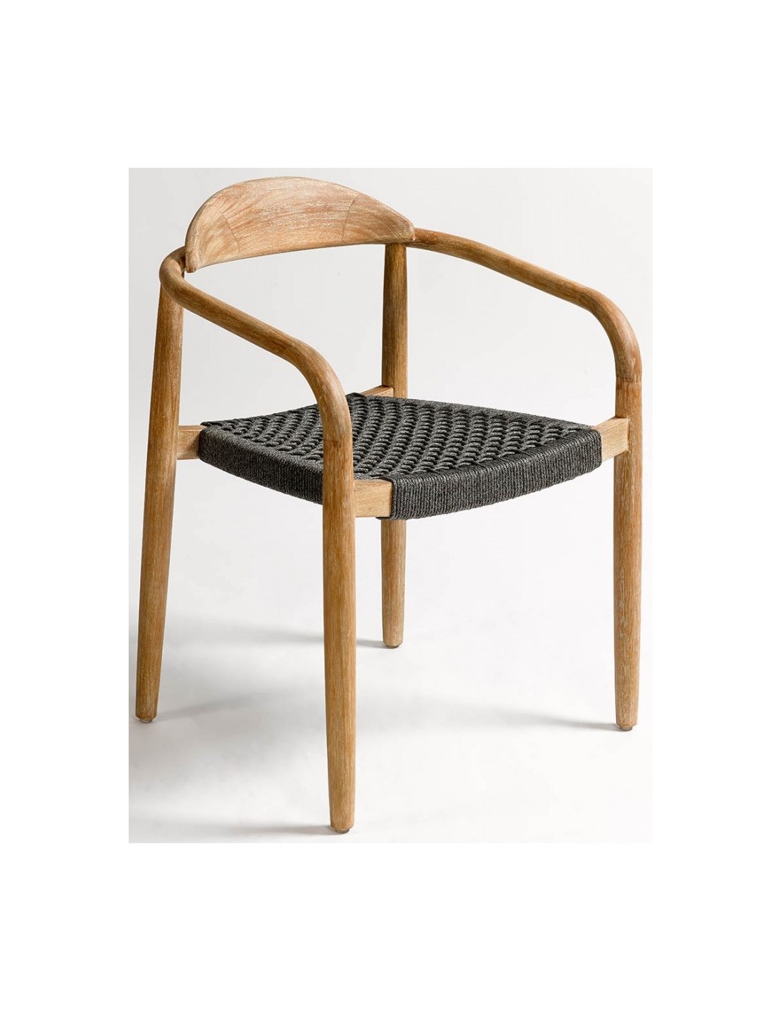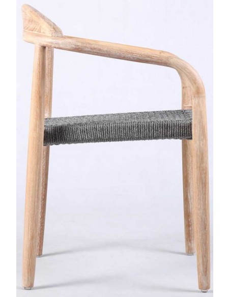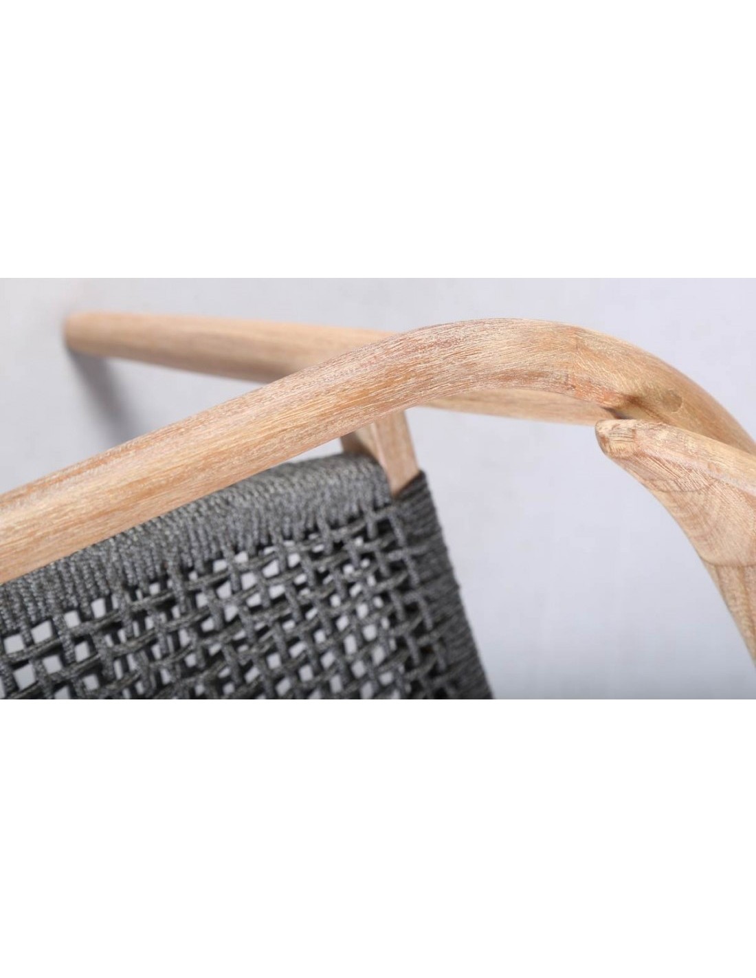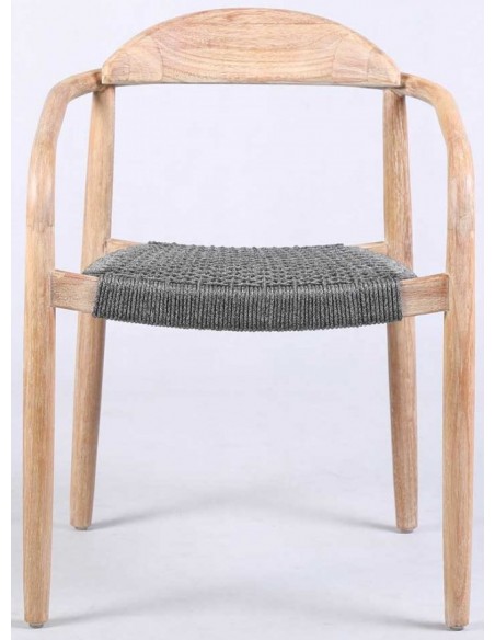 Havestol udført i et design i lysnet eucalyptustræ og med sæde i grå reb. Havestolen måler 76 cm i højden over ryggen og med siddehøjde på 46 cm. Stolen kan stables og tåler at stå ude i regn og fugt. Det anbefales dog at opbevare stolen indendørs ved frost.