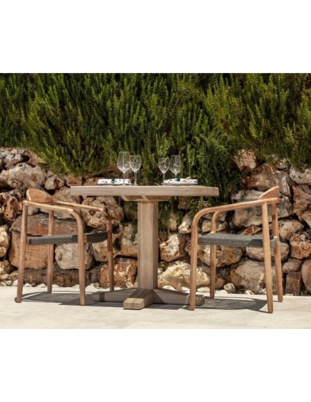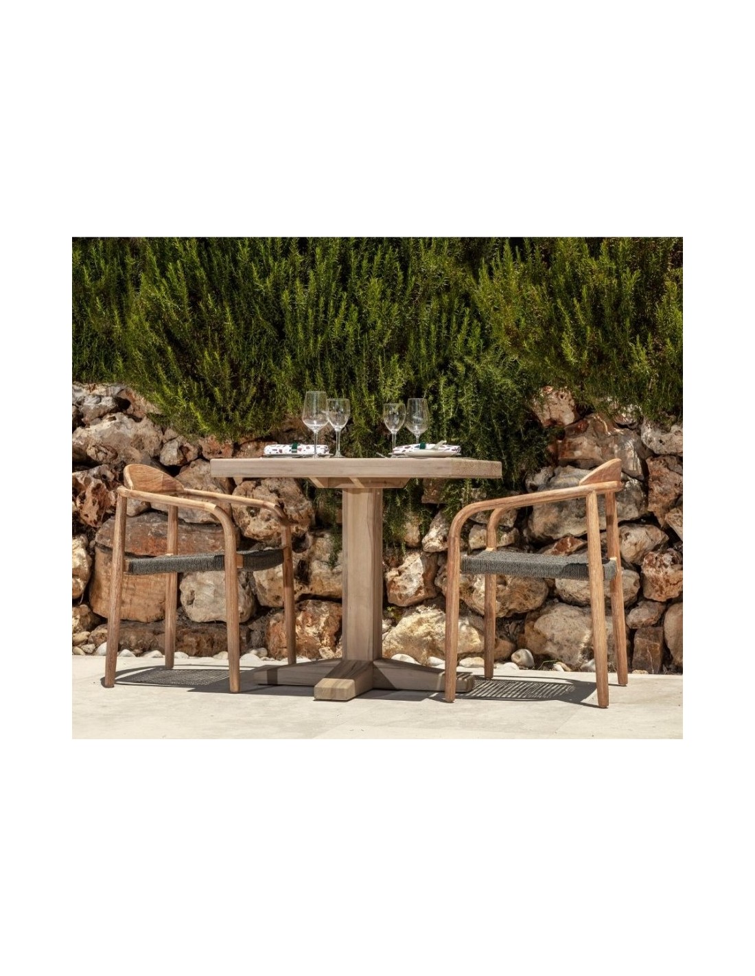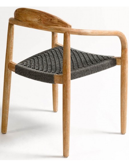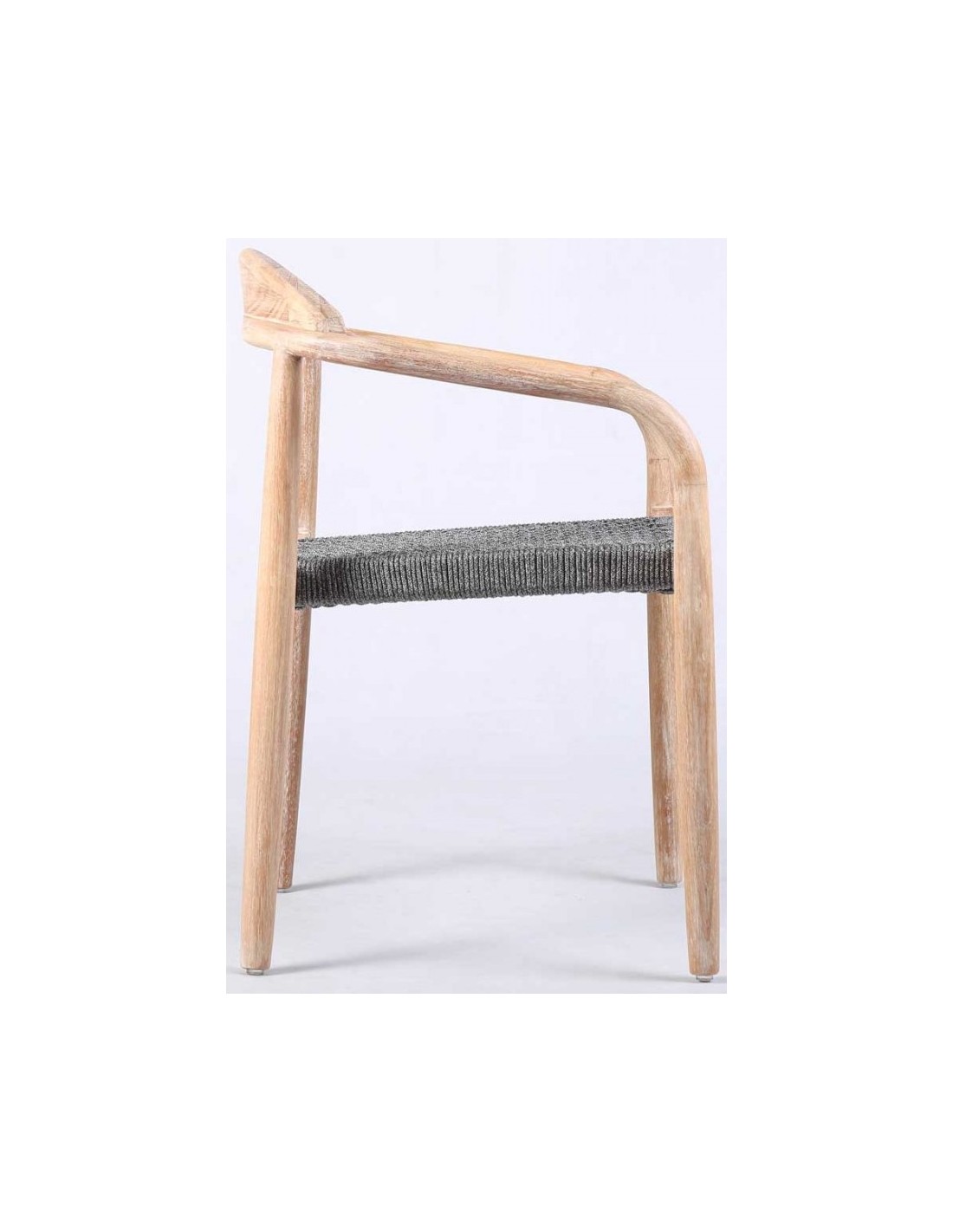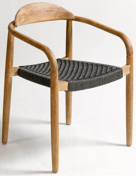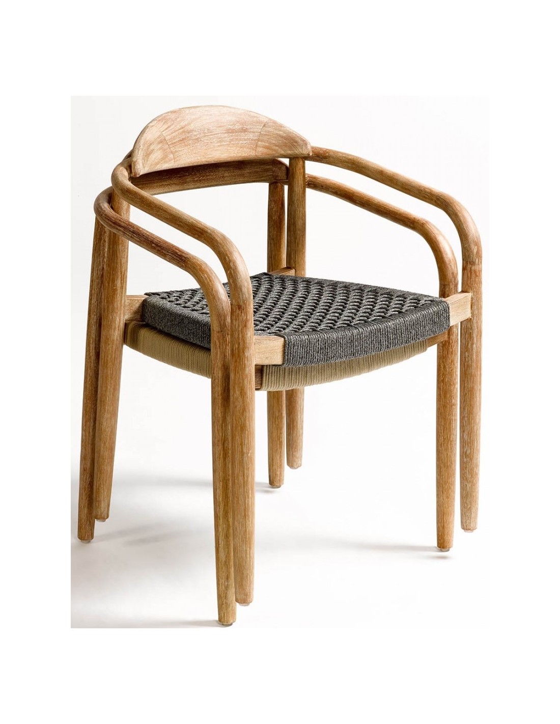 Havestol udført i et design i lysnet eucalyptustræ og med sæde i grå reb. Havestolen måler 76 cm i højden over ryggen og med siddehøjde på 46 cm. Stolen kan stables og tåler at stå ude i regn og fugt. Det anbefales dog at opbevare stolen indendørs ved frost.