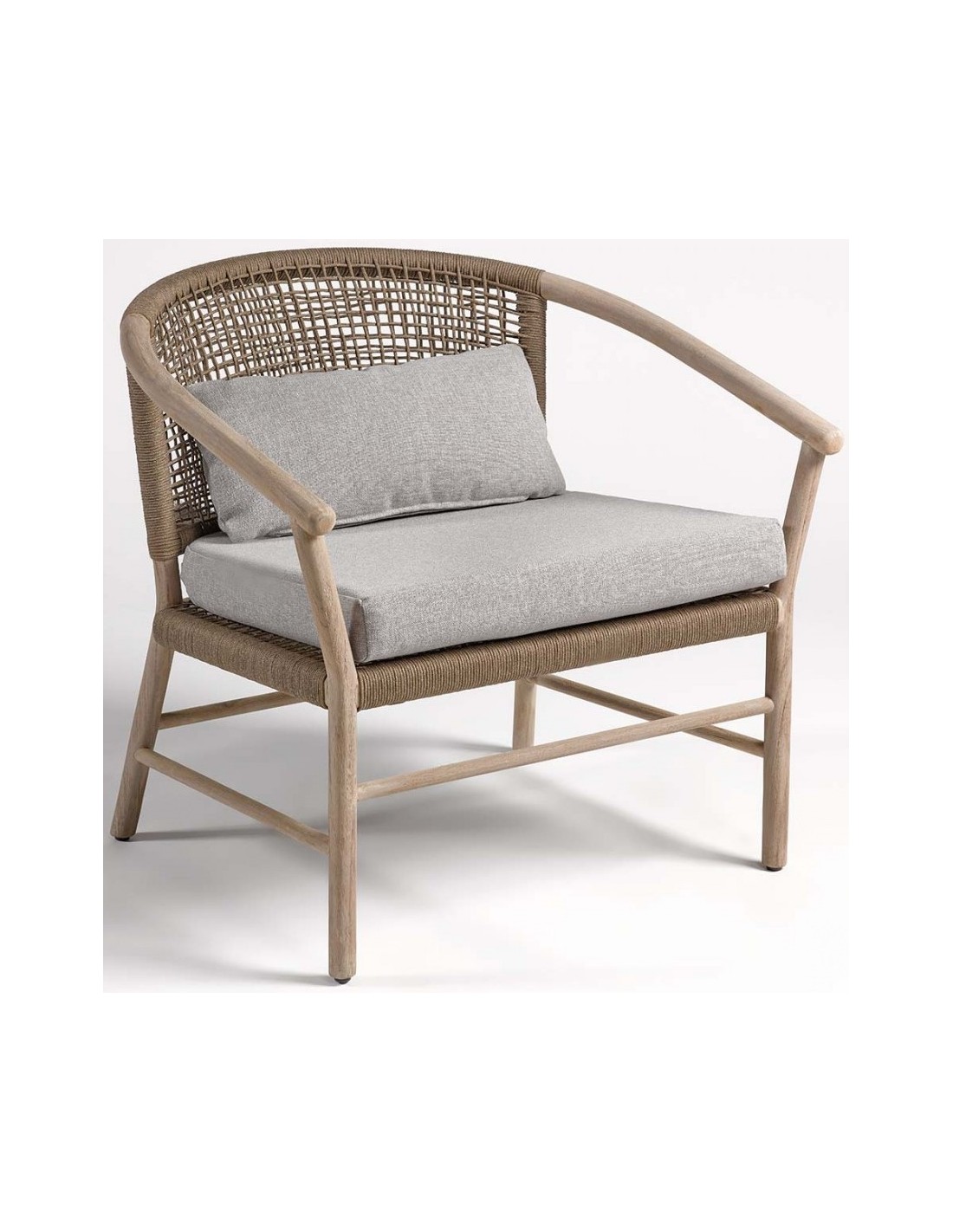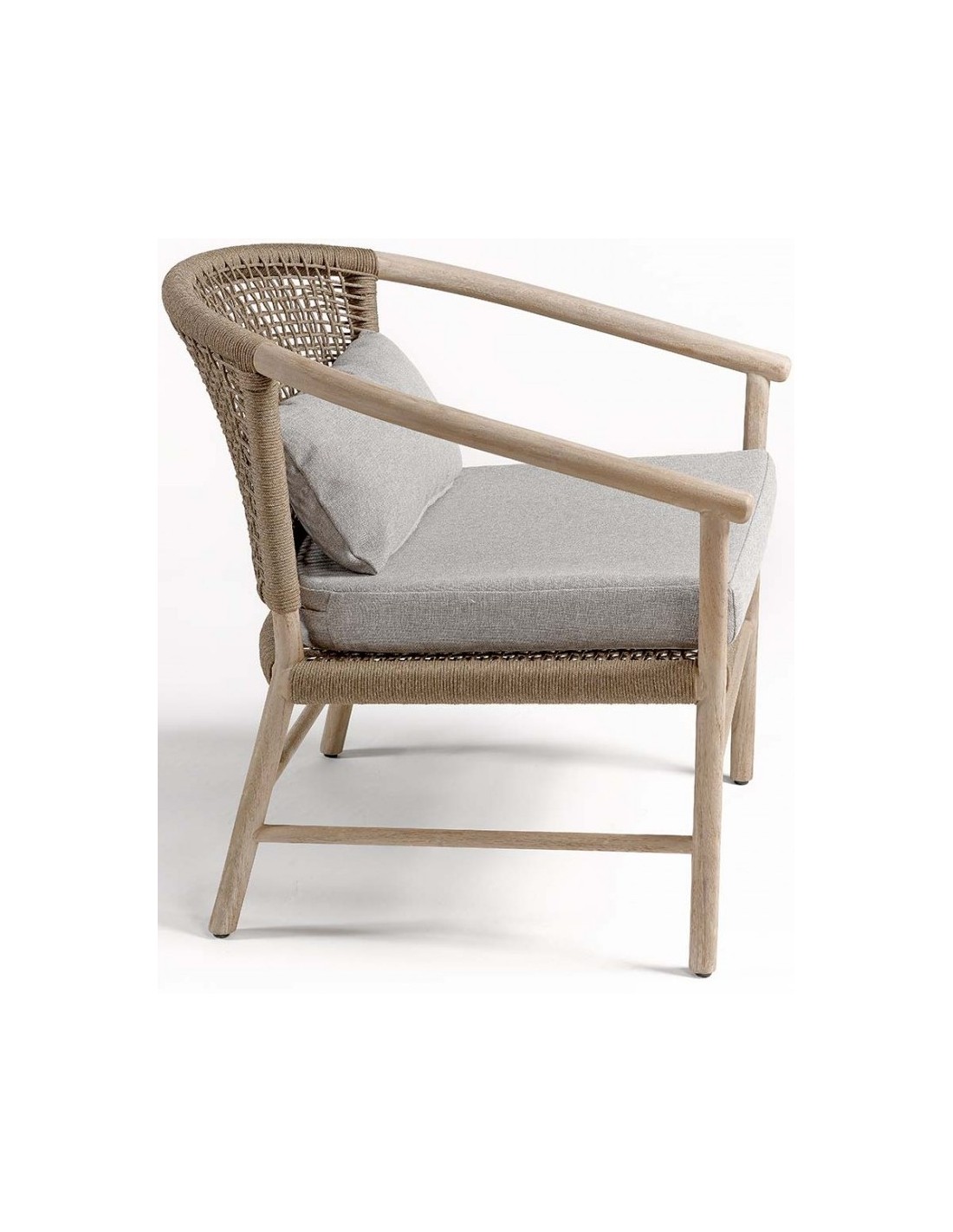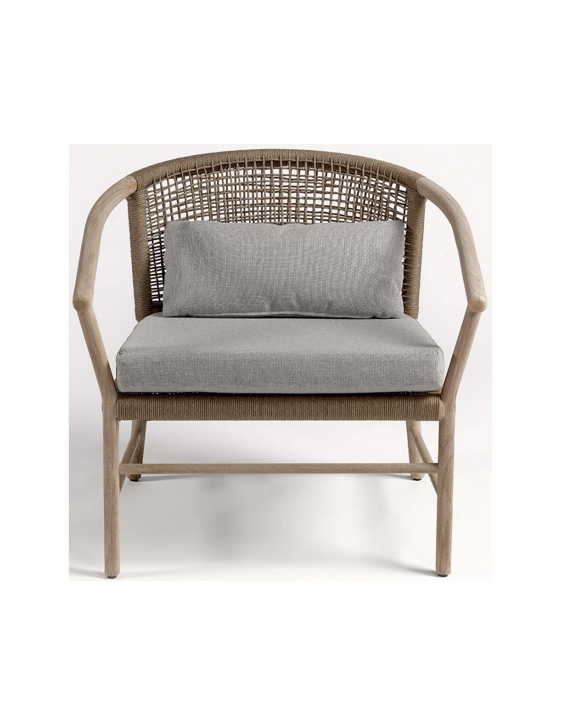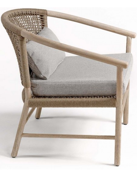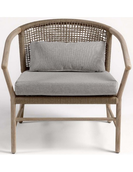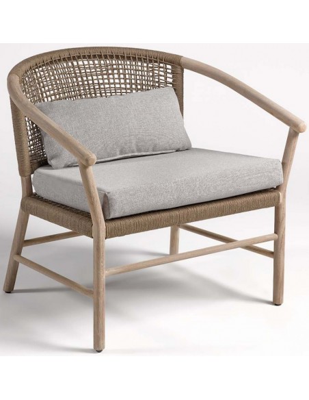 ION Lounge havestol i teaktræ og reb H75 cm - Stengrå/Kamel