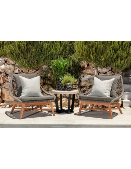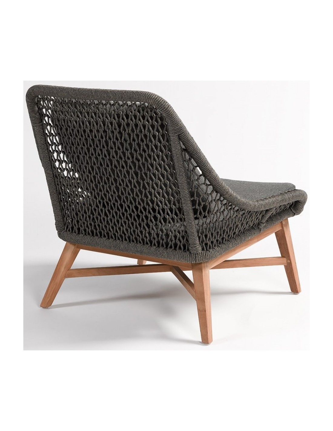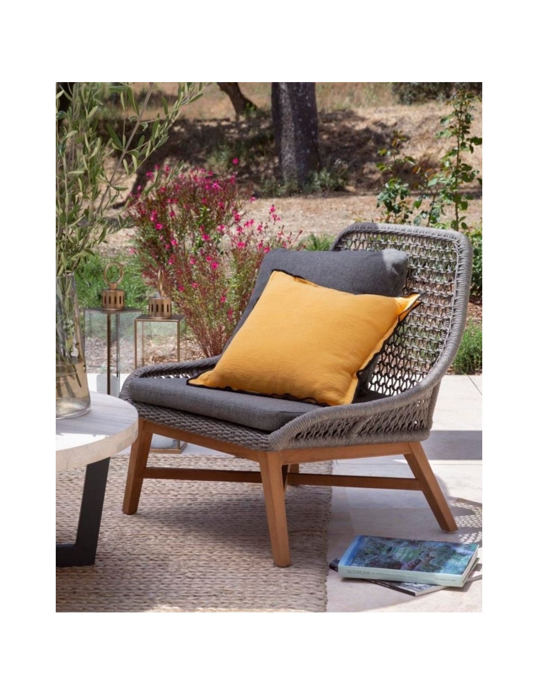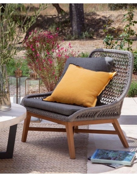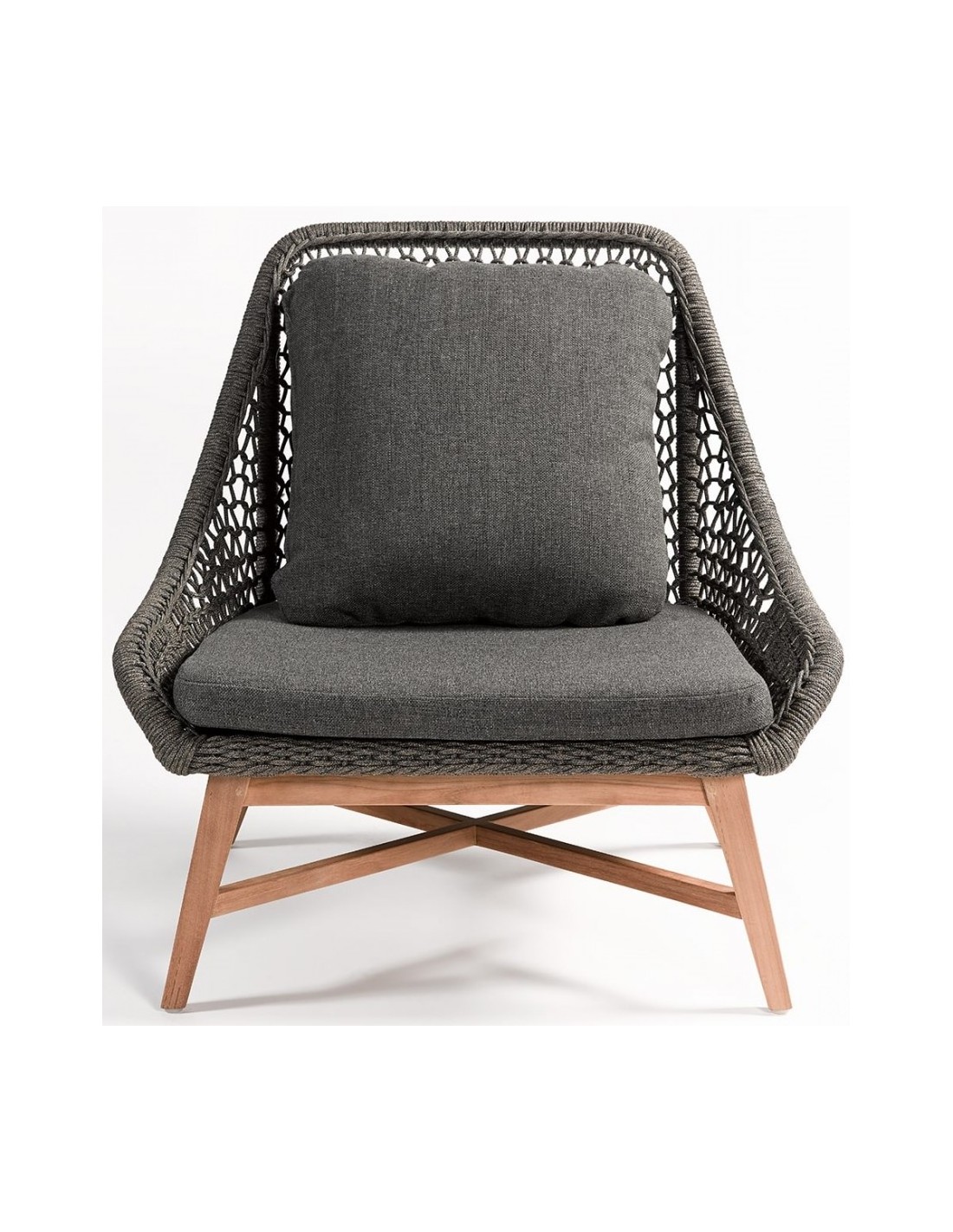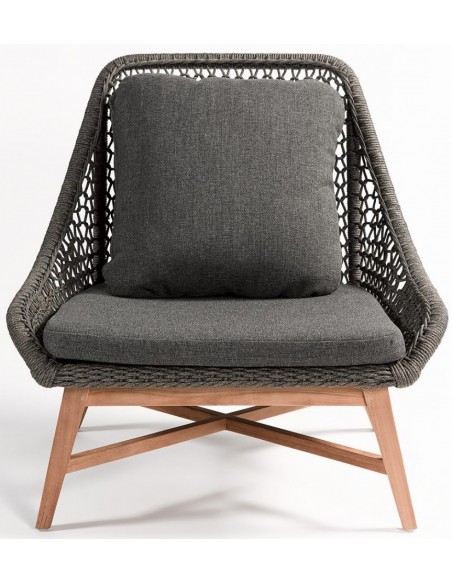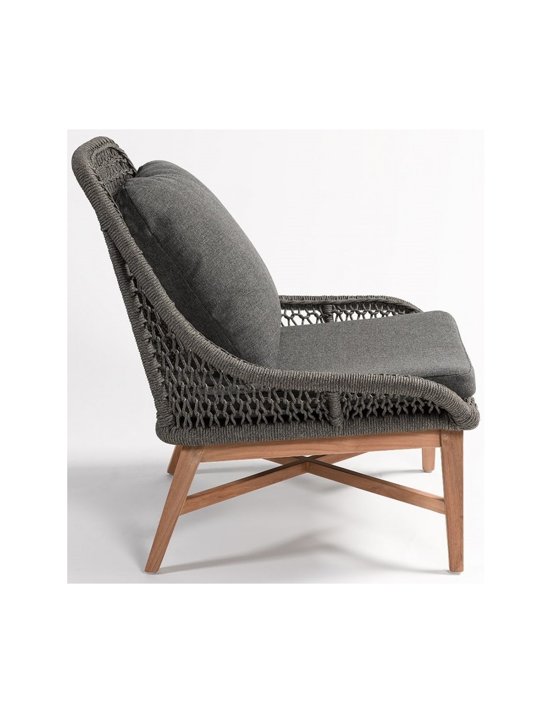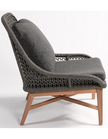 ROXAS Lounge havestol i teaktræ og reb H81 cm - Teak/Grå