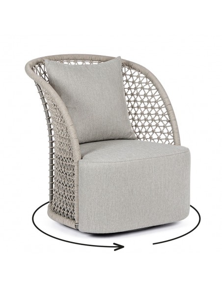 Cuyen rotérbar lounge havestol i aluminium, reb og olefin B93 cm - Sand/Grå