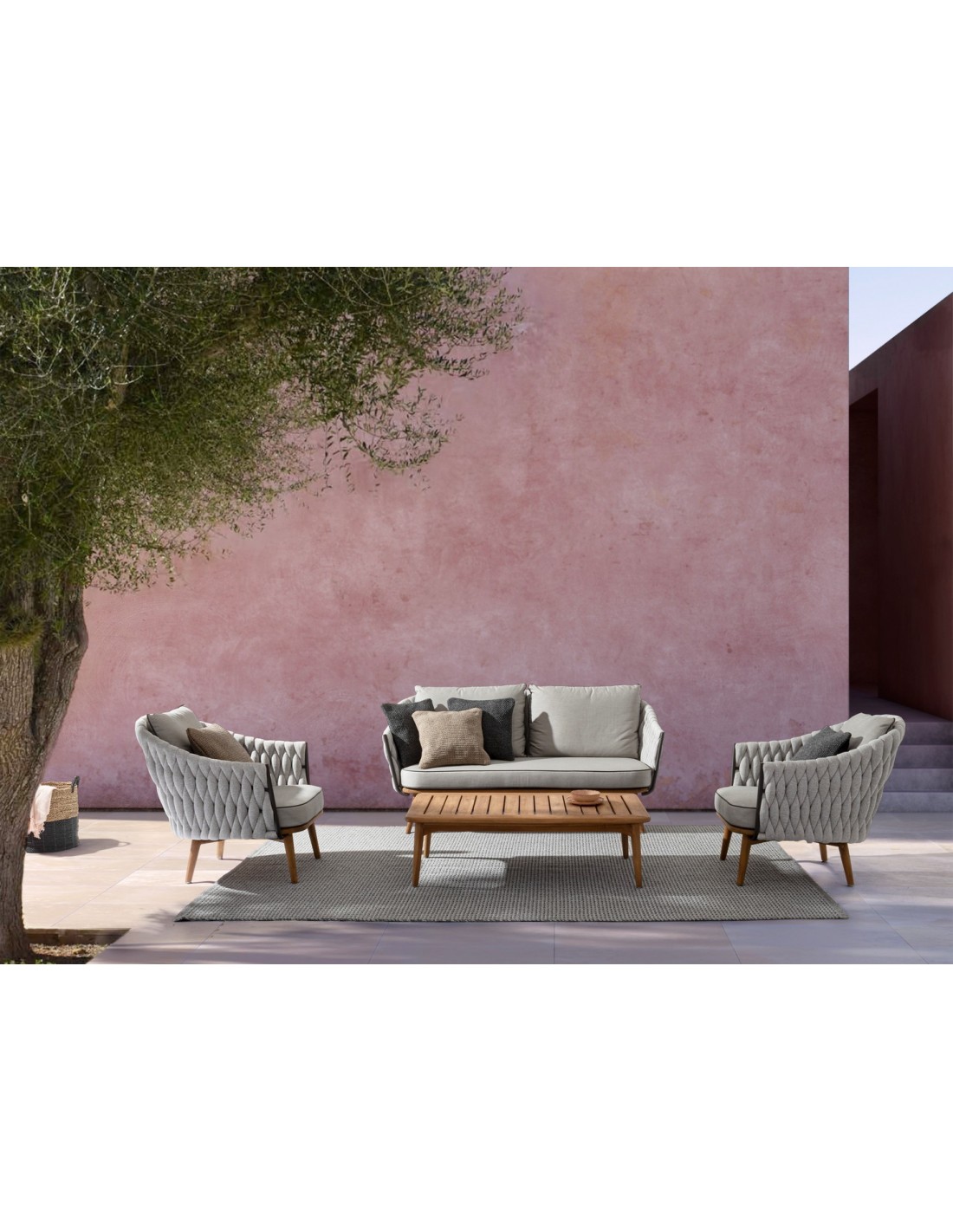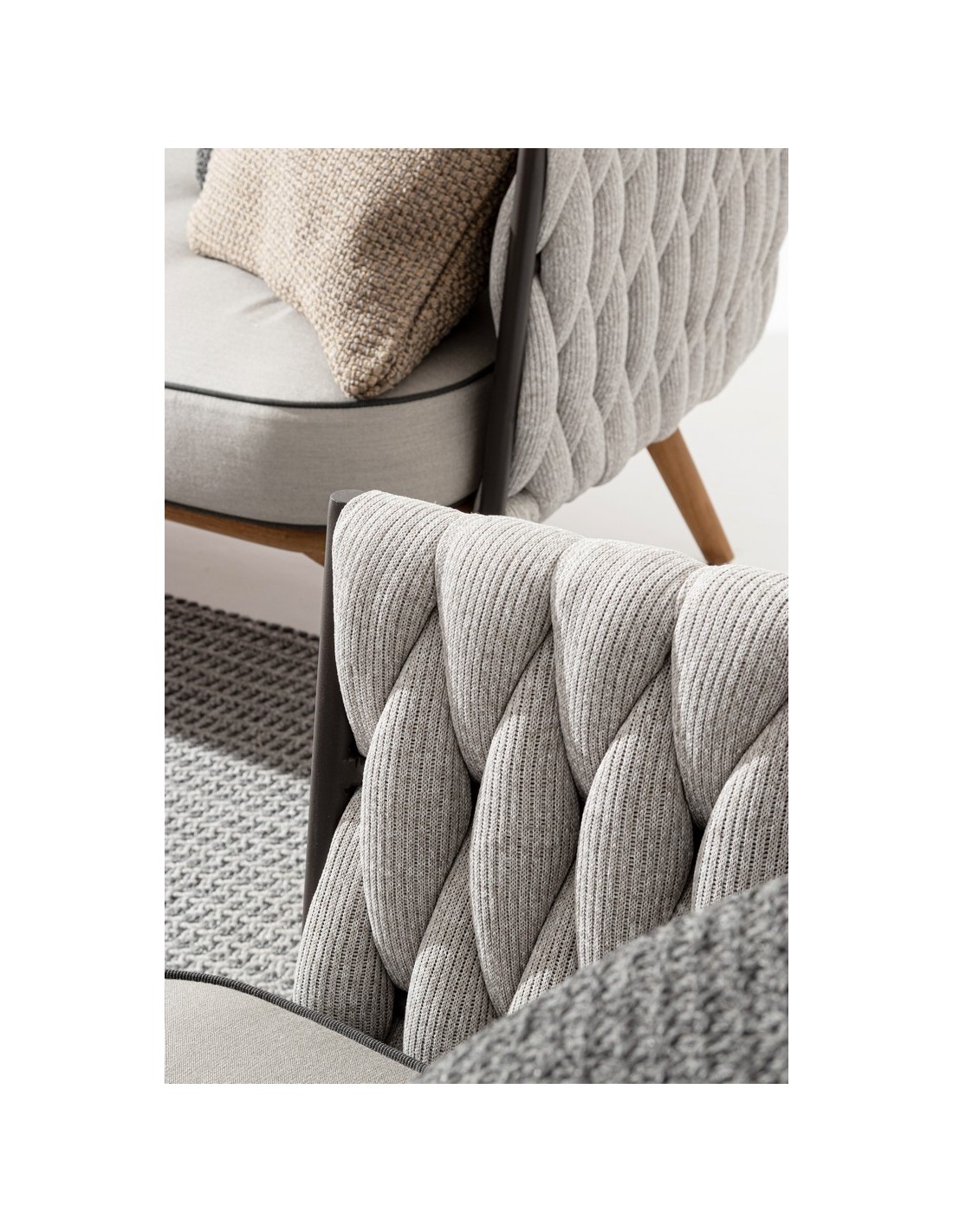 • Tåler at stå ude i regn, dog anbefaler vi at hynder og puder opbevares indendørs når sættet ikke er i brug