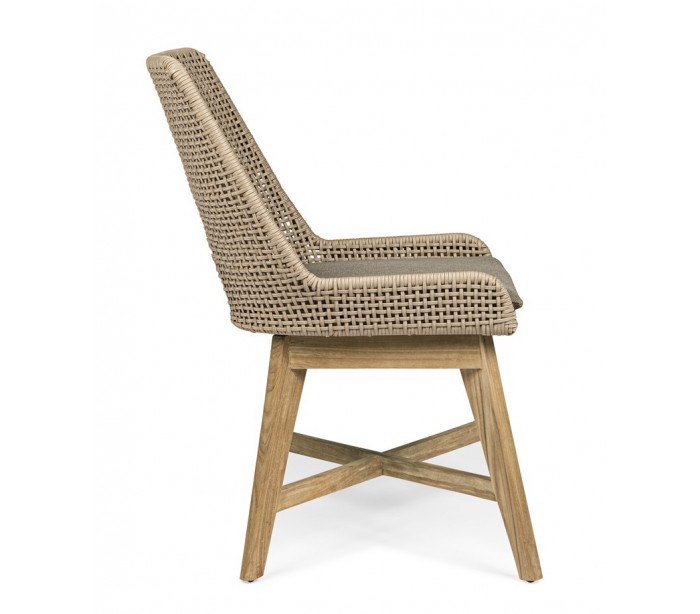 Sæt med 2 havestole udført i et design af lakeret teaktræ og ramme i aluminium og med sæde i vandafvisende polypropylene. Stol og siddehynde er UV-beskyttet. Stolene måler 86 cm i højden over ryggen og 50 cm i bredden.