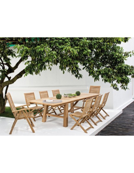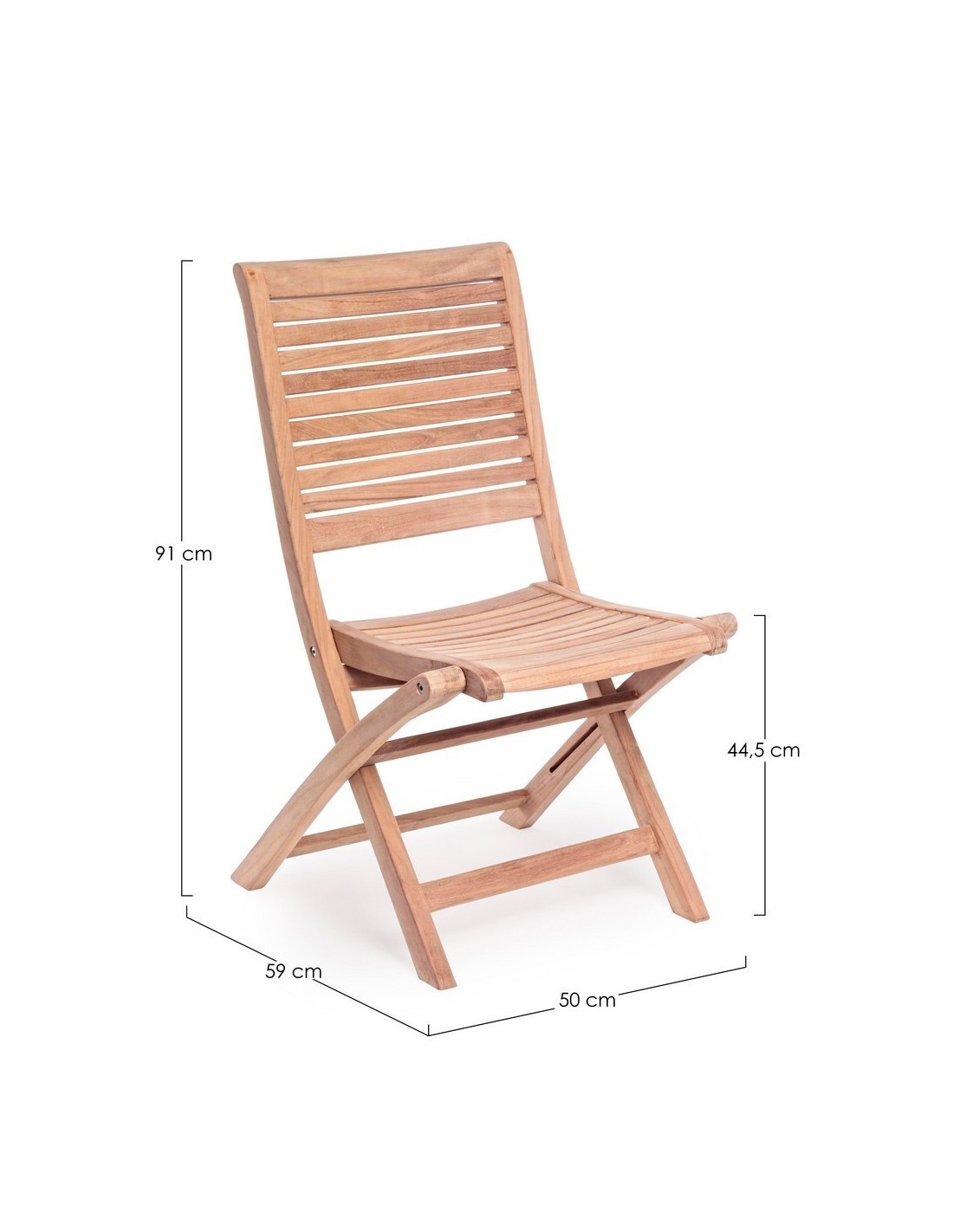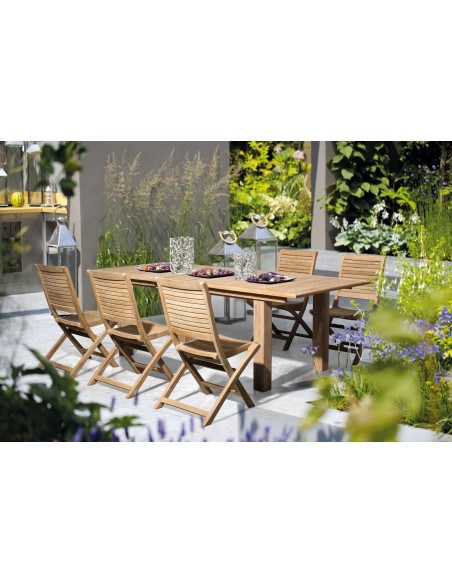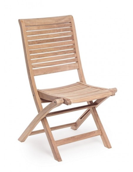 Sæt med 2 have klapstole udført i et design af teaktræ. Stolen måler 91 cm i højden over ryggen og 44,5 cm i siddehøjden.
