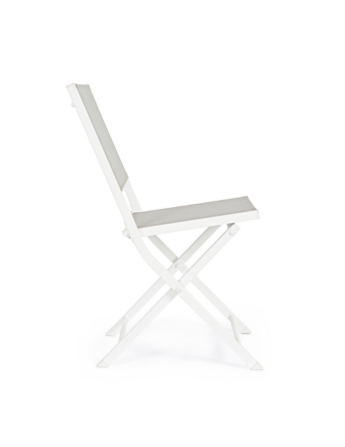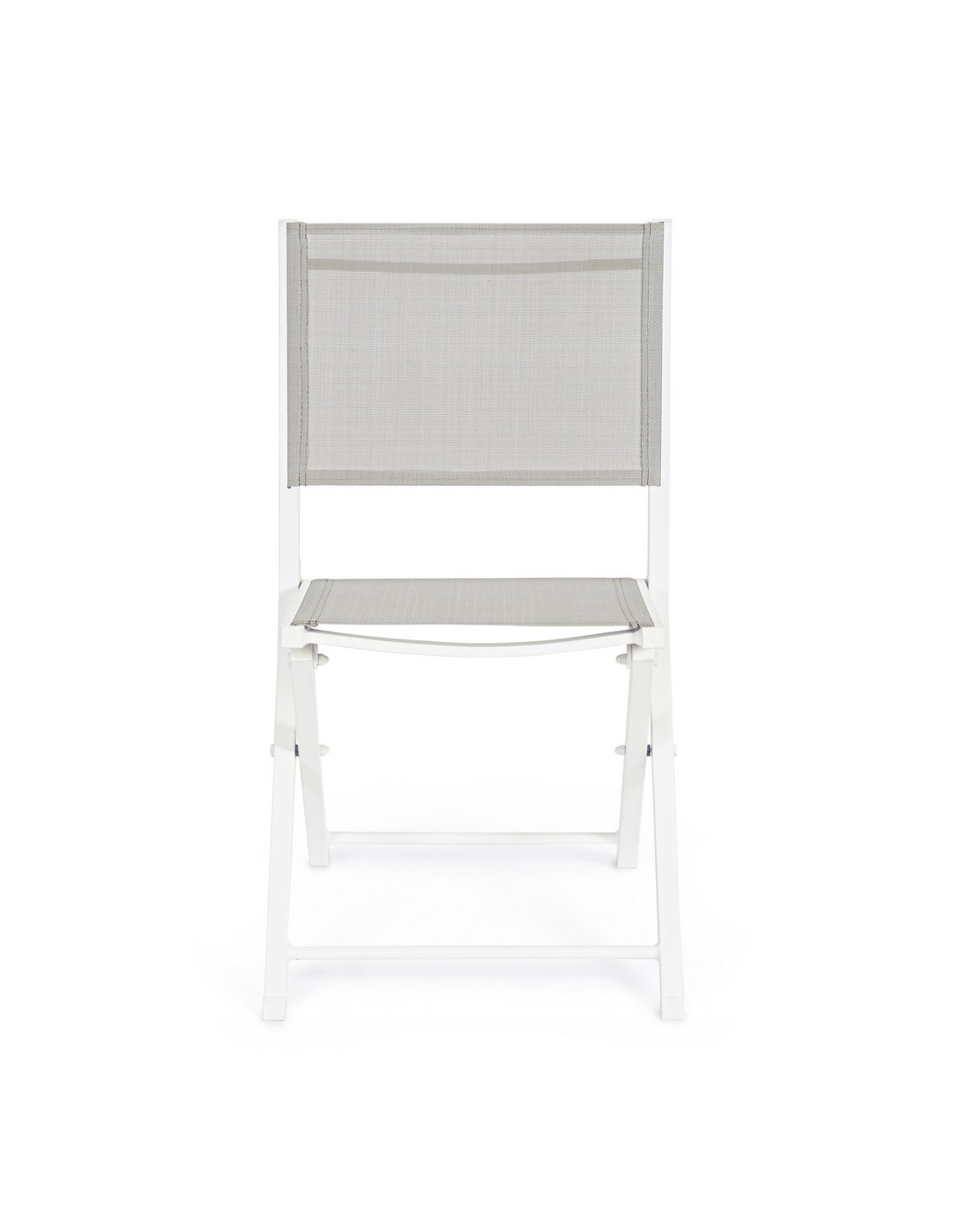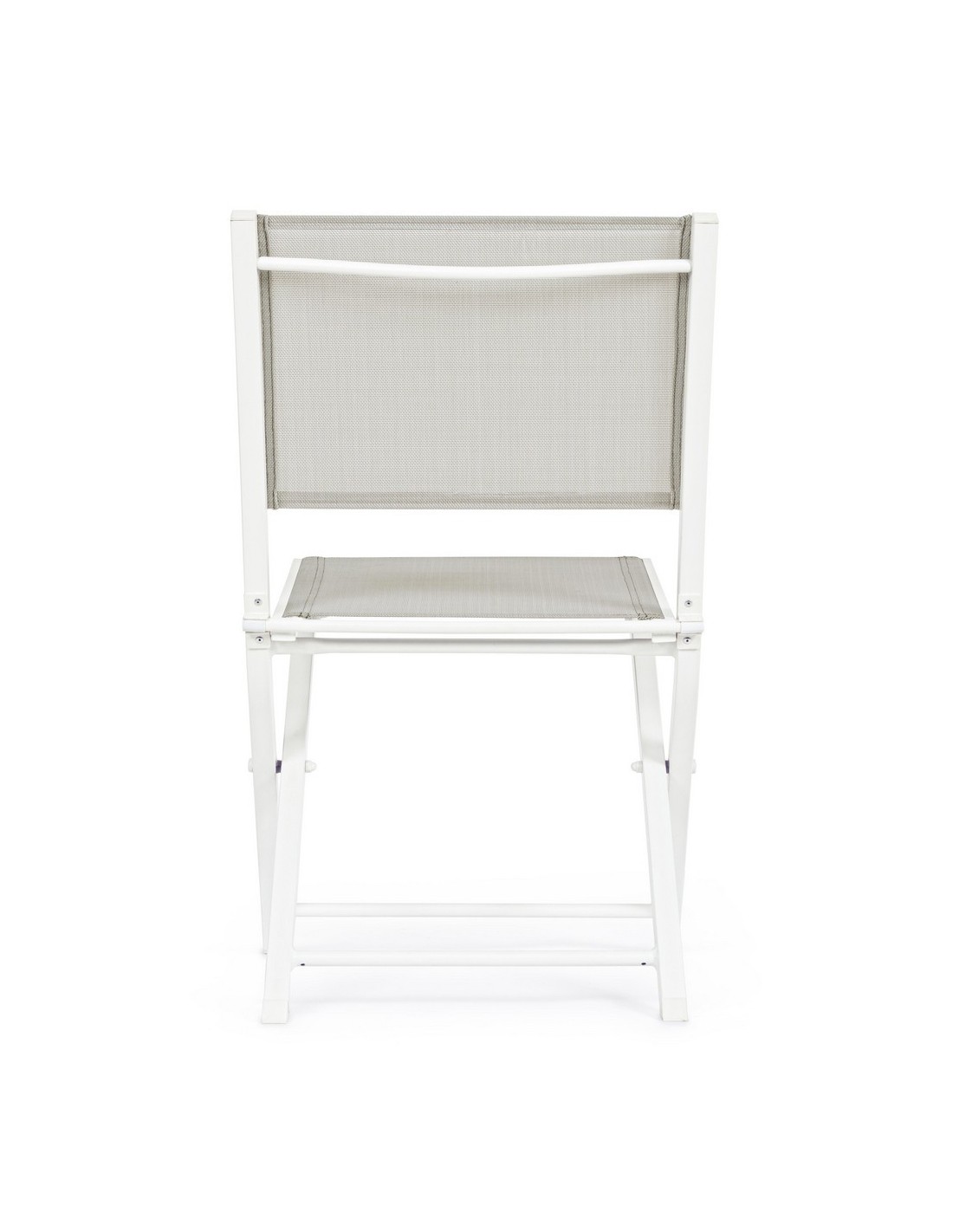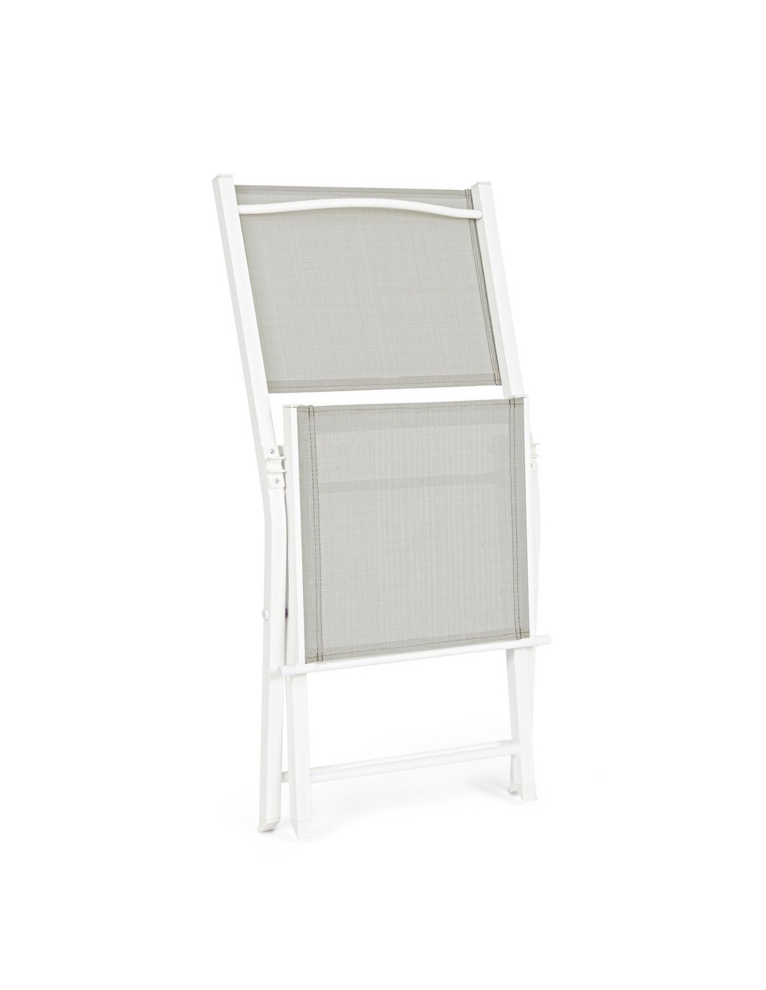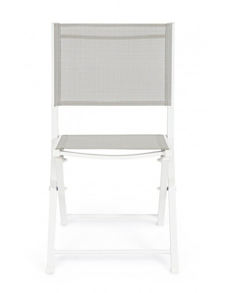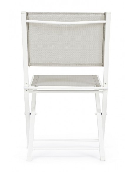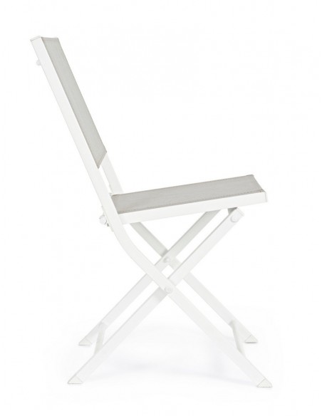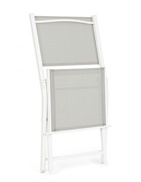 Sæt med 4 have klapstole udført i et design af hvid pulverlakeret aluminium og textilene. Stolen måler 82,5 cm i højden over ryggen og 44 cm i siddehøjden.