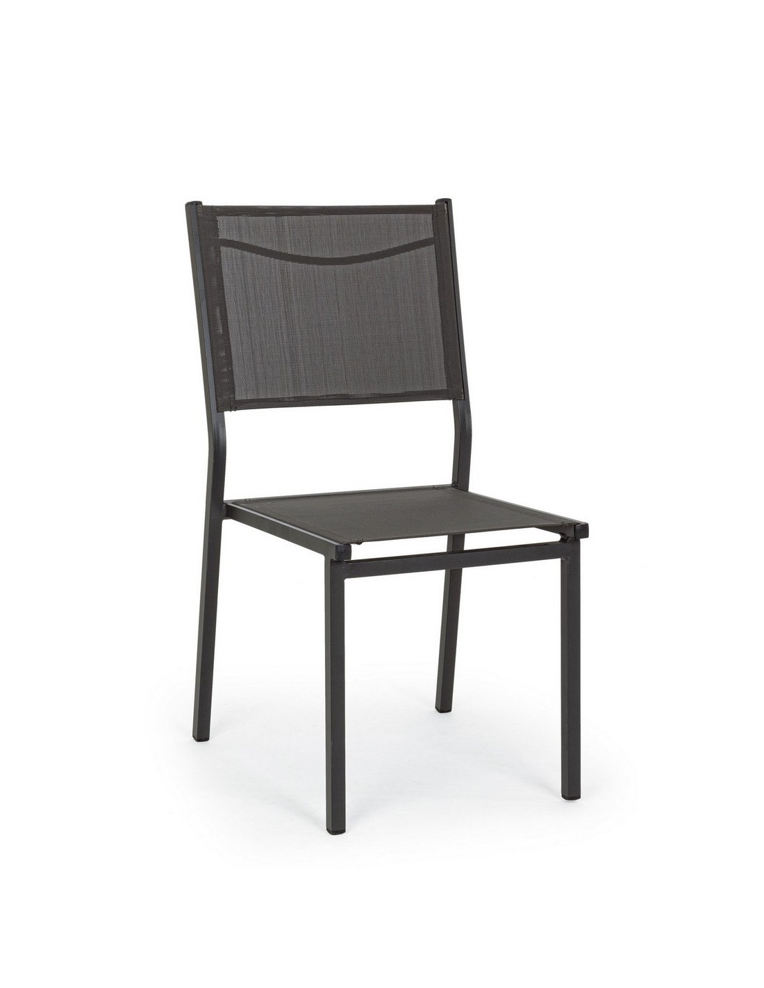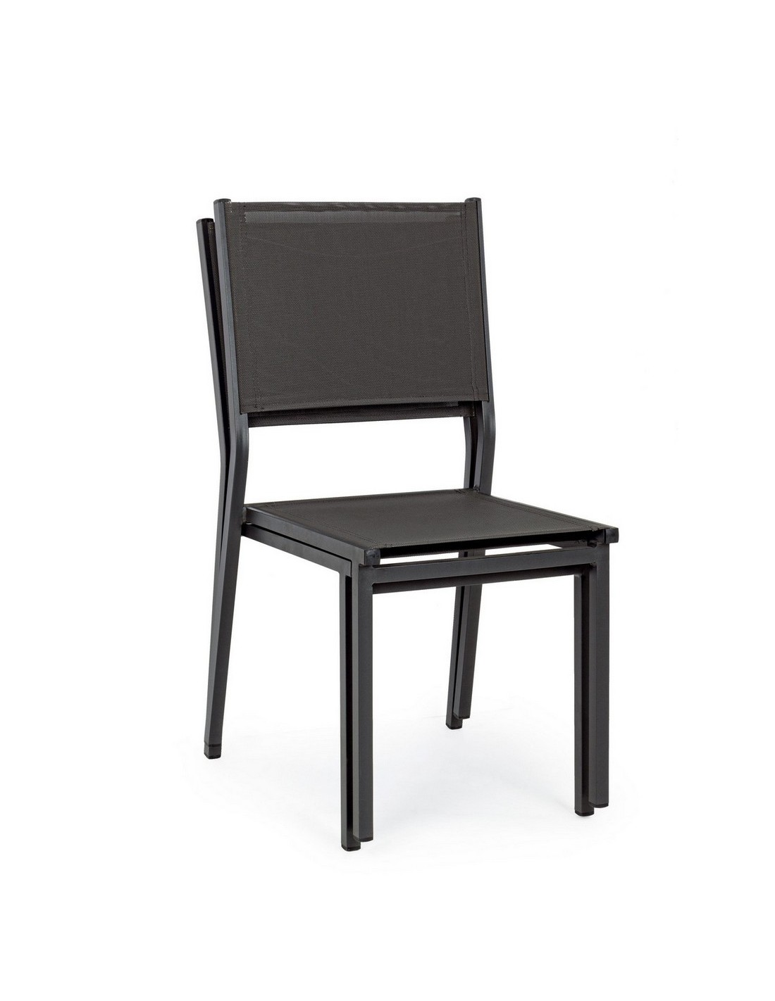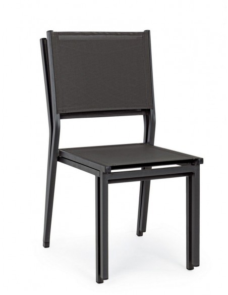 Sæt med 6 havestole udført i et design af charcoal pulverlakeret aluminium og textilene. Stolen måler 88 cm i højden over ryggen og 43,5 cm i siddehøjden.