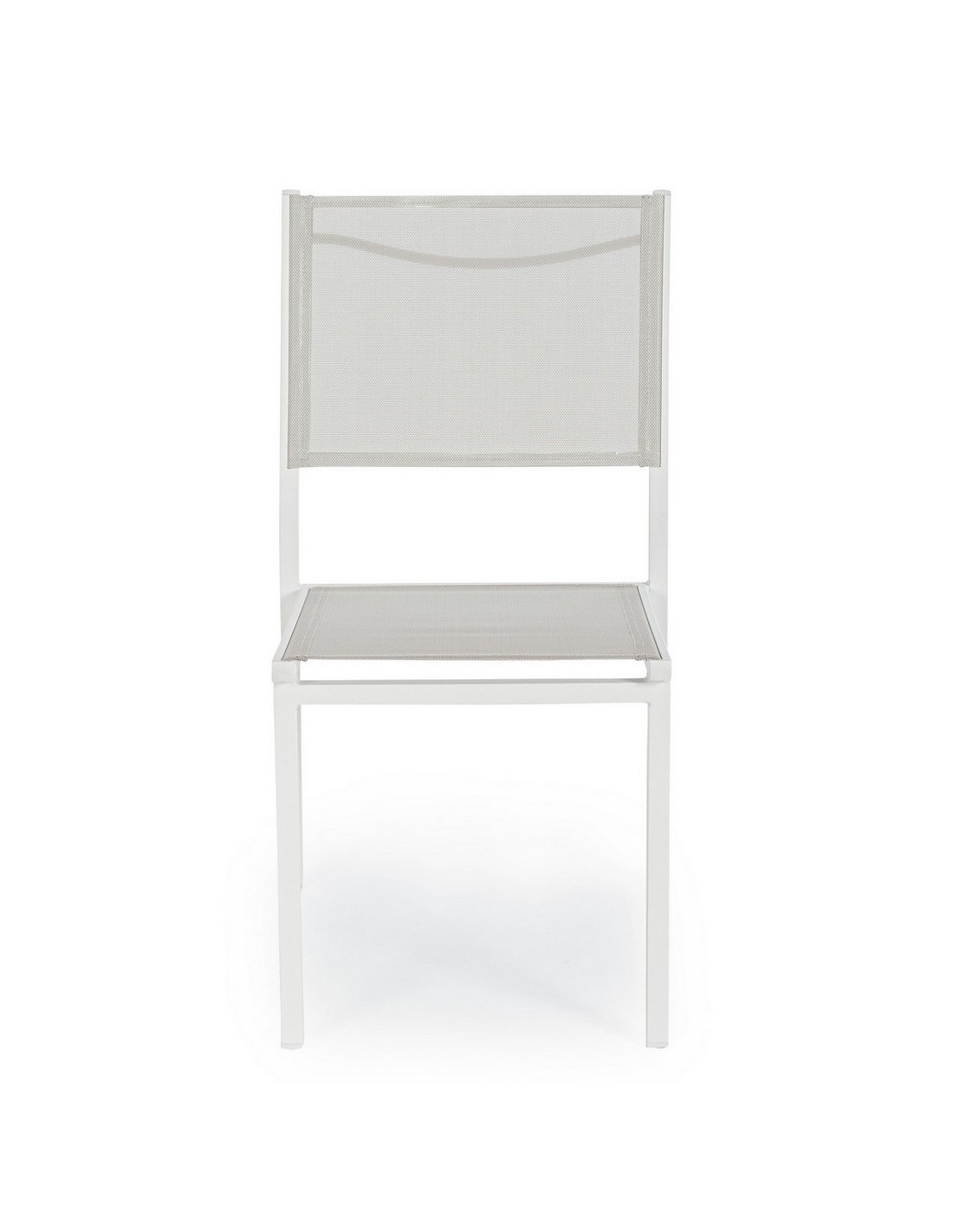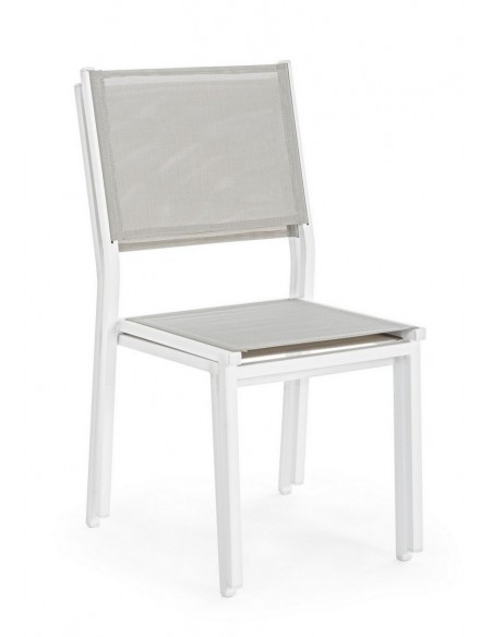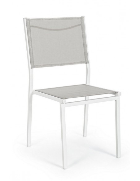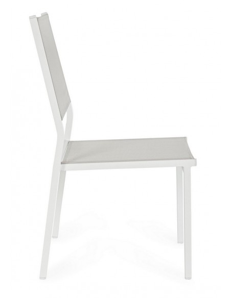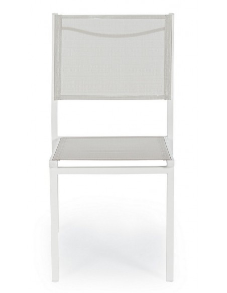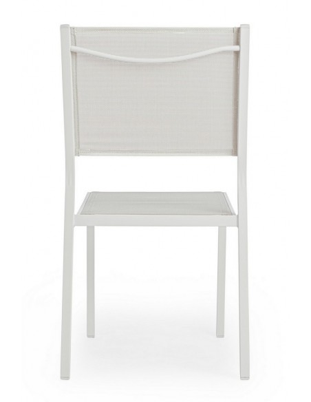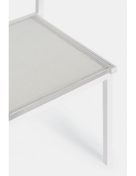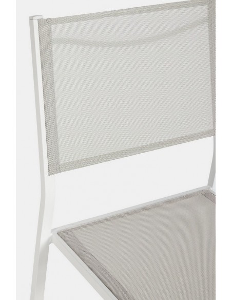 Sæt med 6 havestole udført i et design af hvid pulverlakeret aluminium og textilene. Stolen måler 88 cm i højden over ryggen og 43,5 cm i siddehøjden.