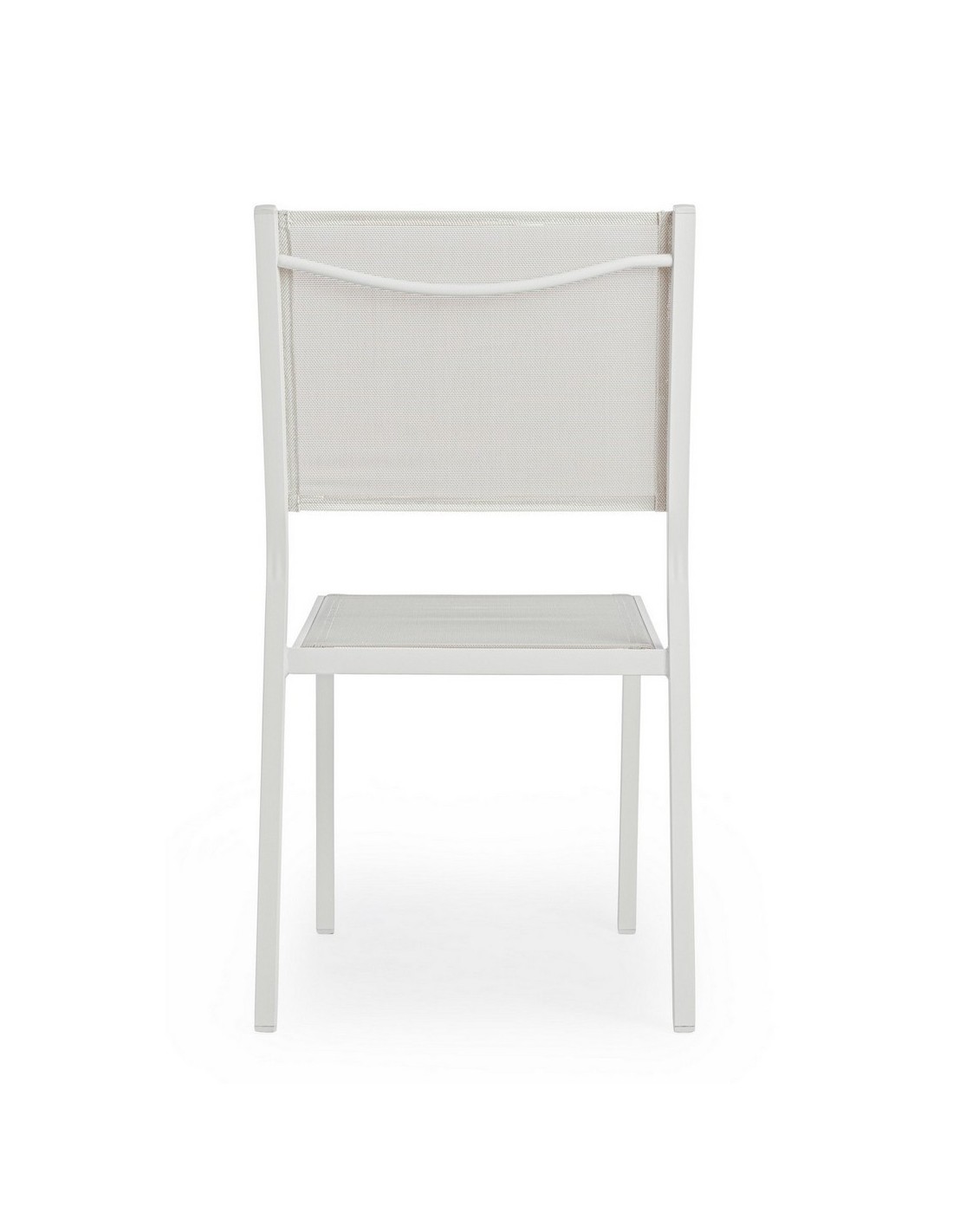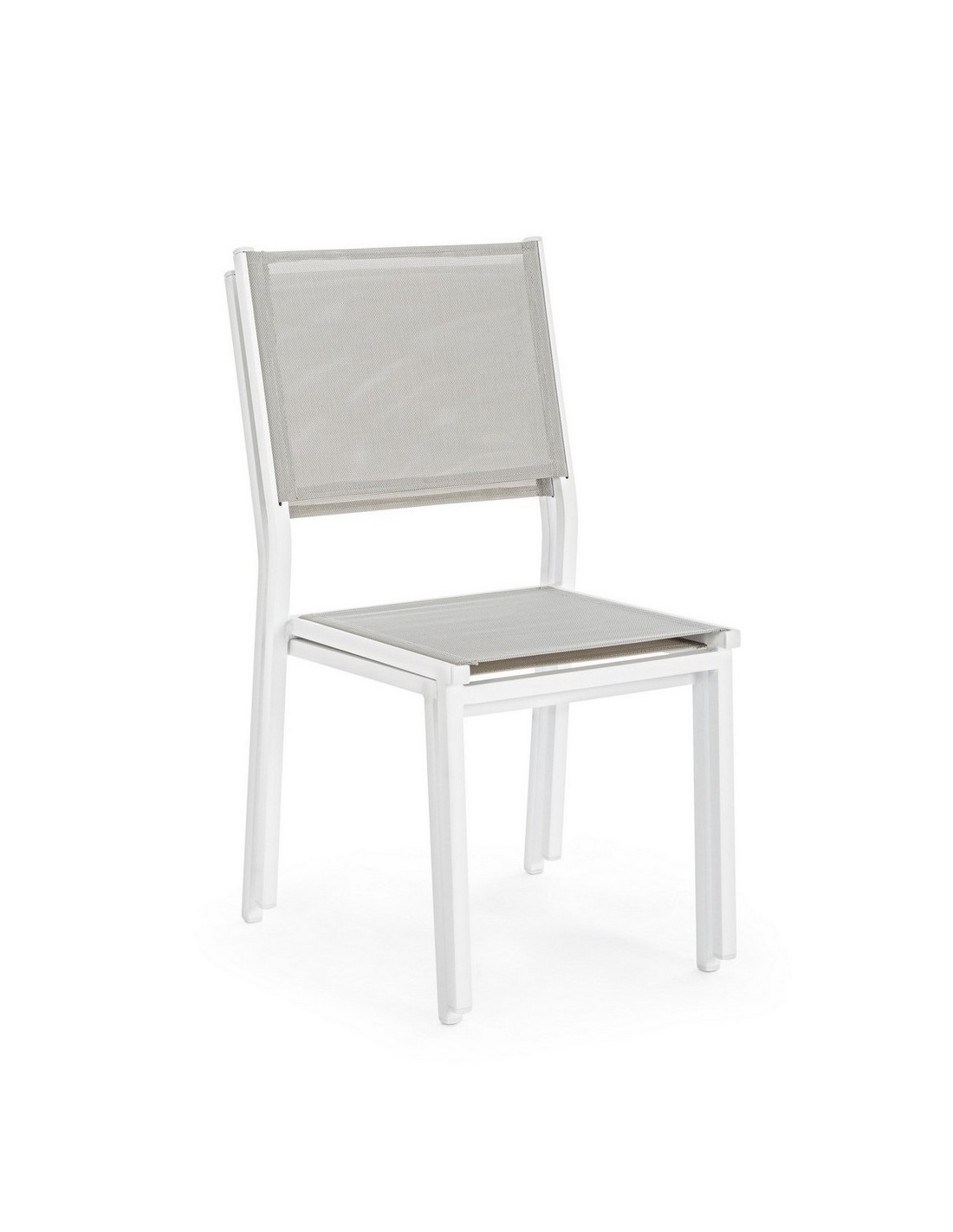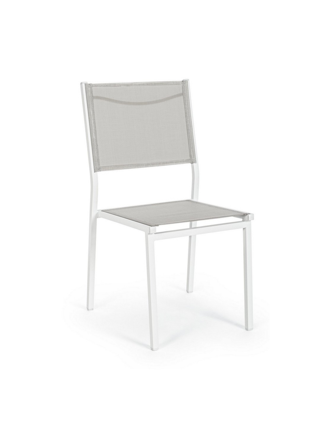 Sæt med 6 havestole udført i et design af hvid pulverlakeret aluminium og textilene. Stolen måler 88 cm i højden over ryggen og 43,5 cm i siddehøjden.