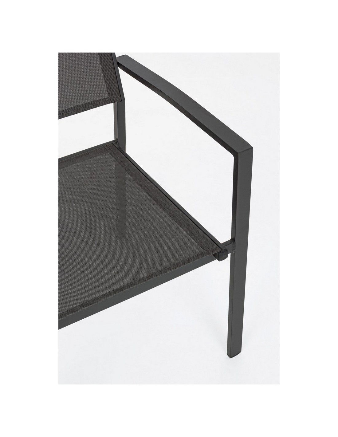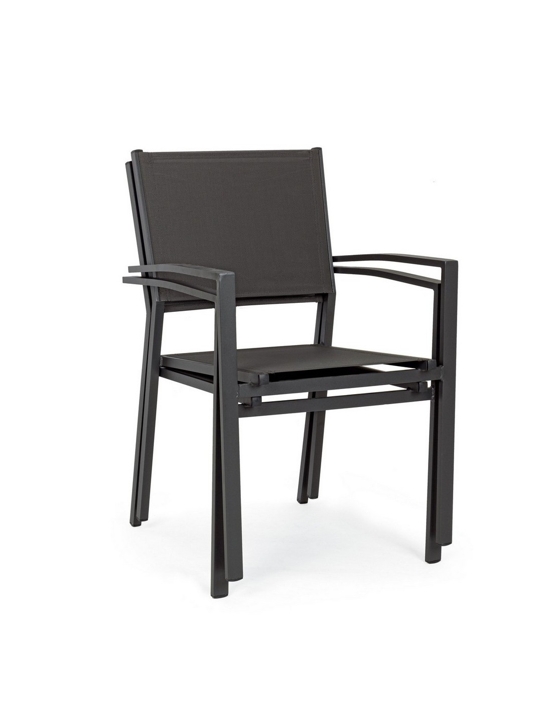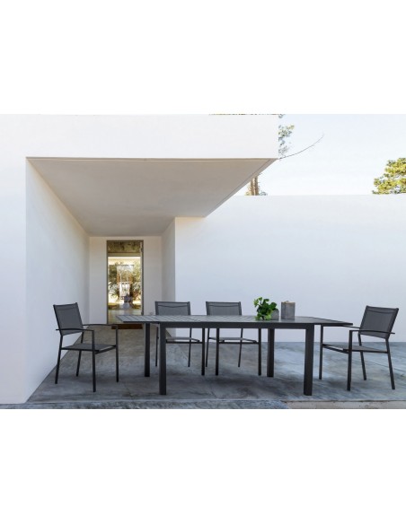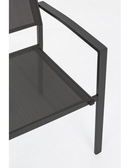 Sæt med 6 havestole med armlæn, udført i et design af charcoal pulverlakeret aluminium og textilene. Stolen måler 88 cm i højden over ryggen og 43,5 cm i siddehøjden.