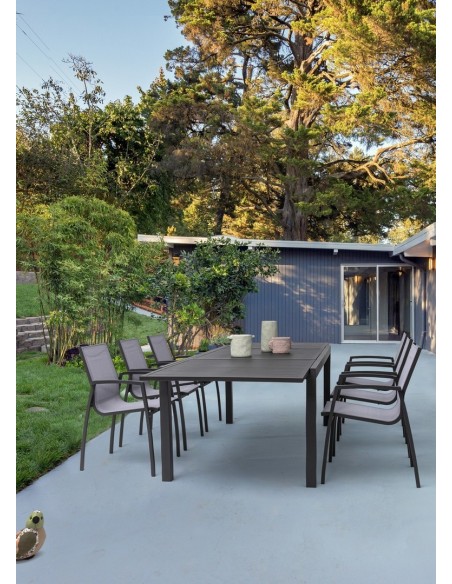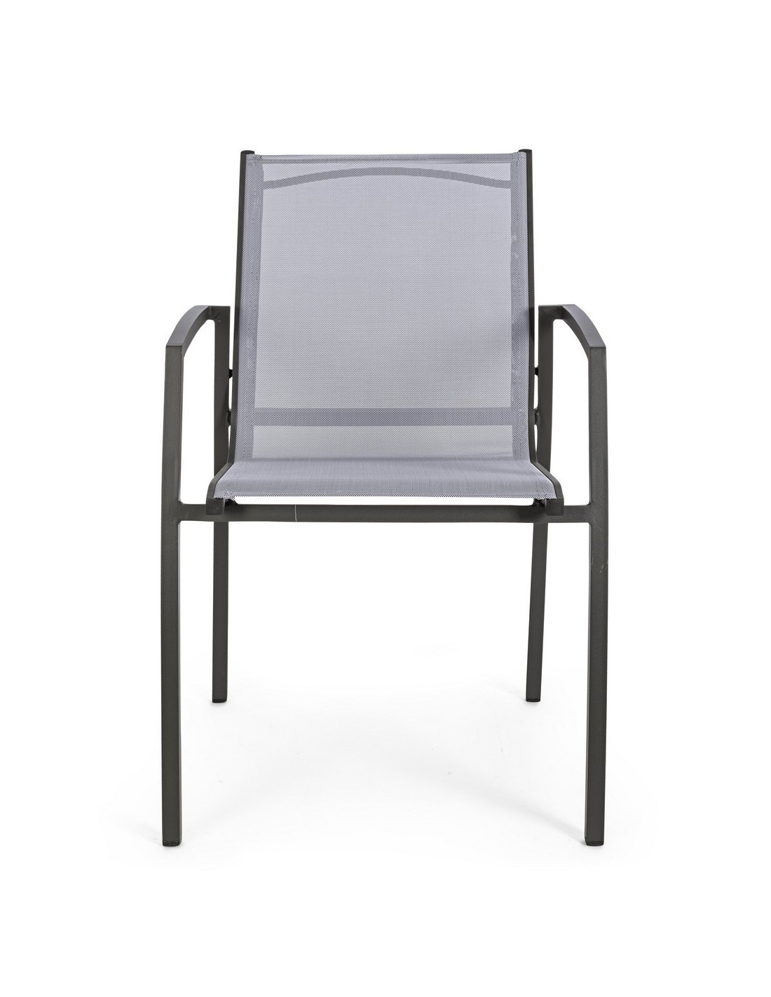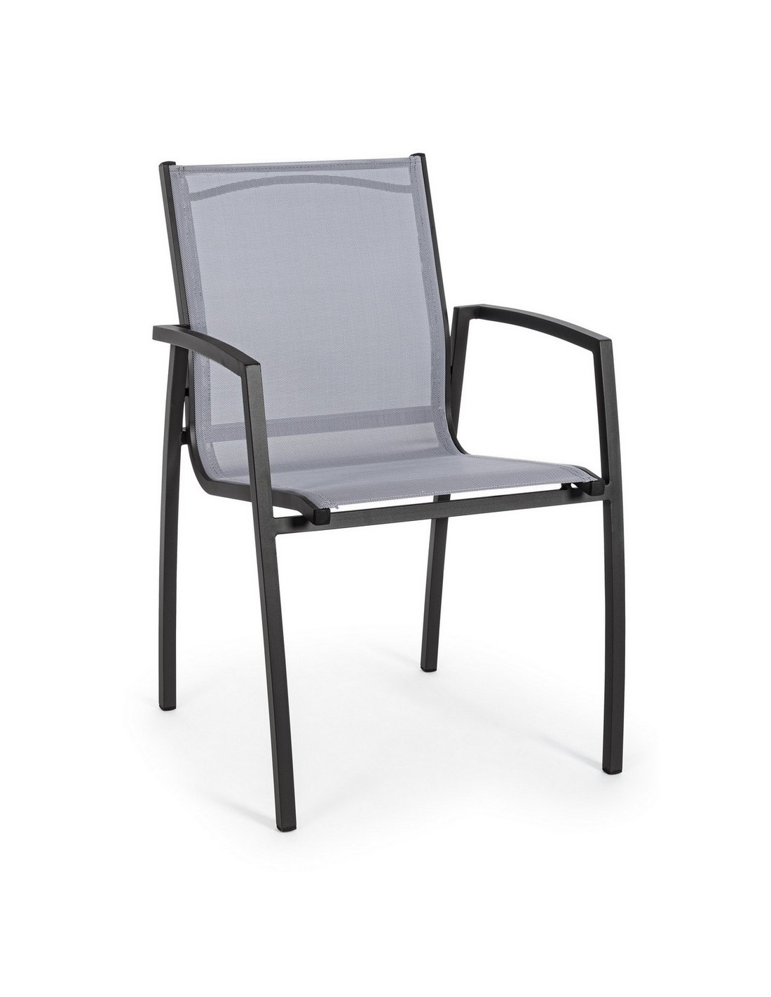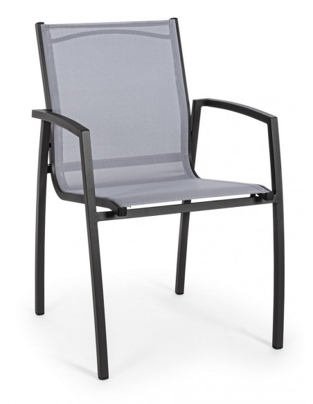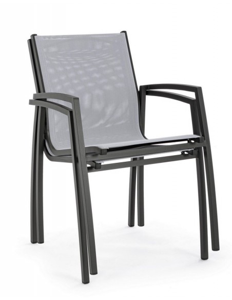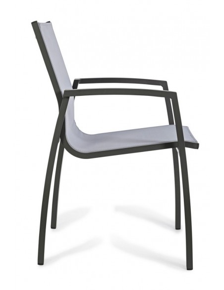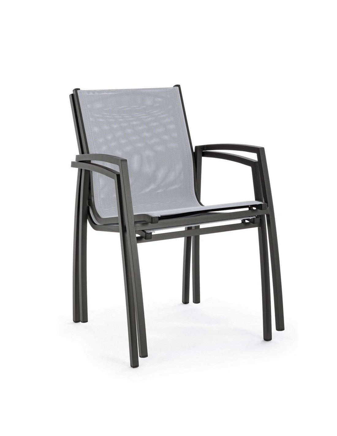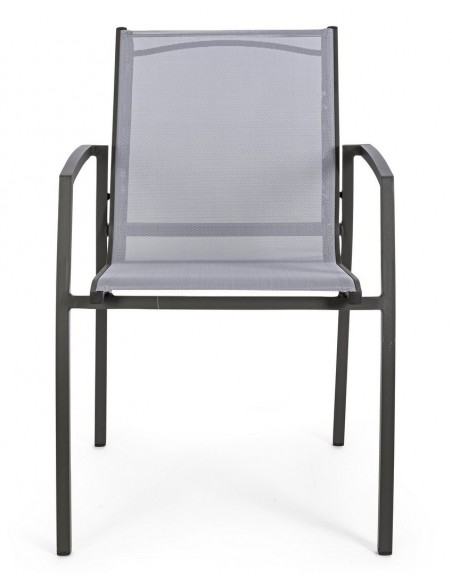 Sæt med 6 havestole med armlæn, udført i et design af charcoal pulverlakeret aluminium og grå textilene. Stolen måler 87 cm i højden over ryggen og 46,5 cm i siddehøjden.