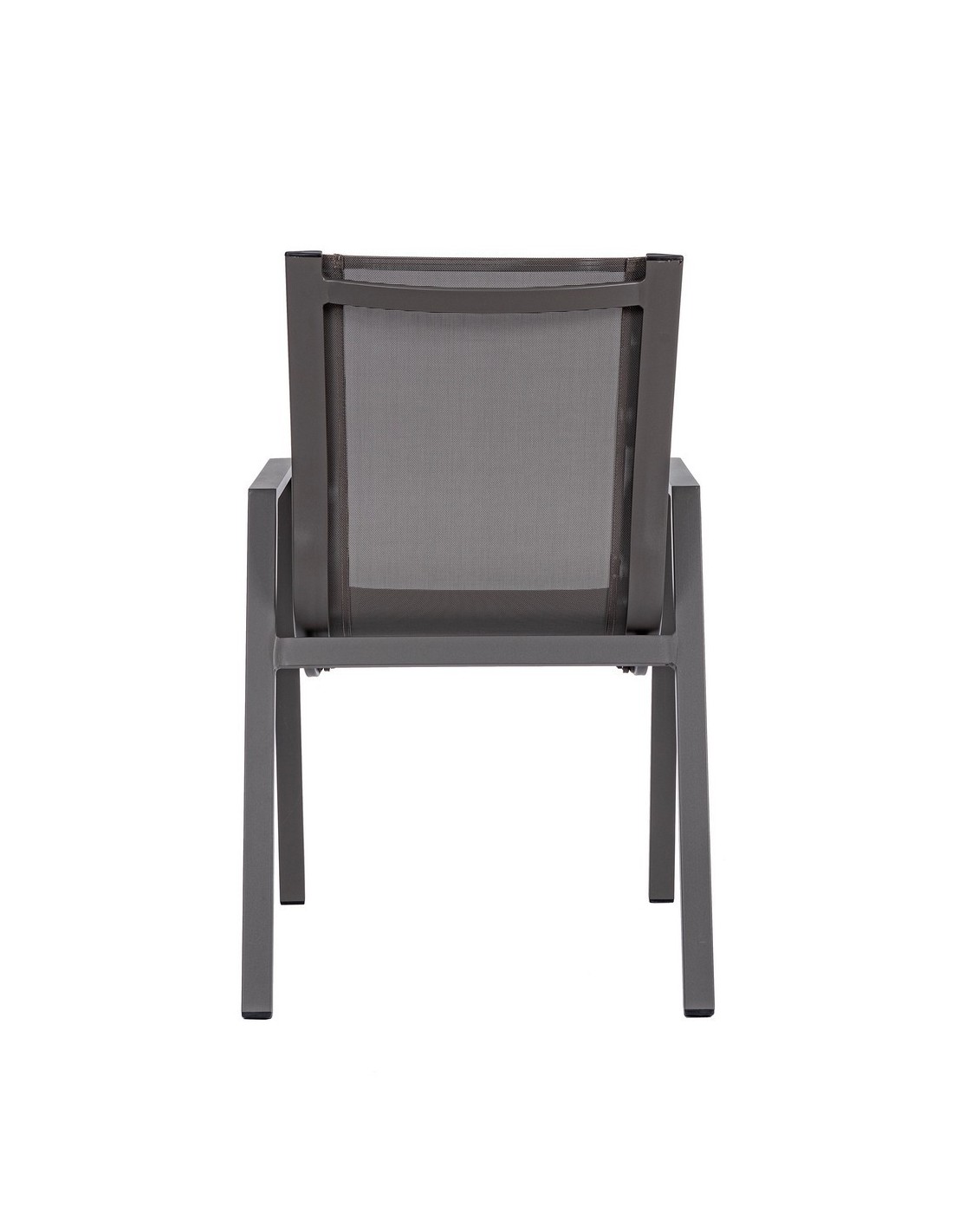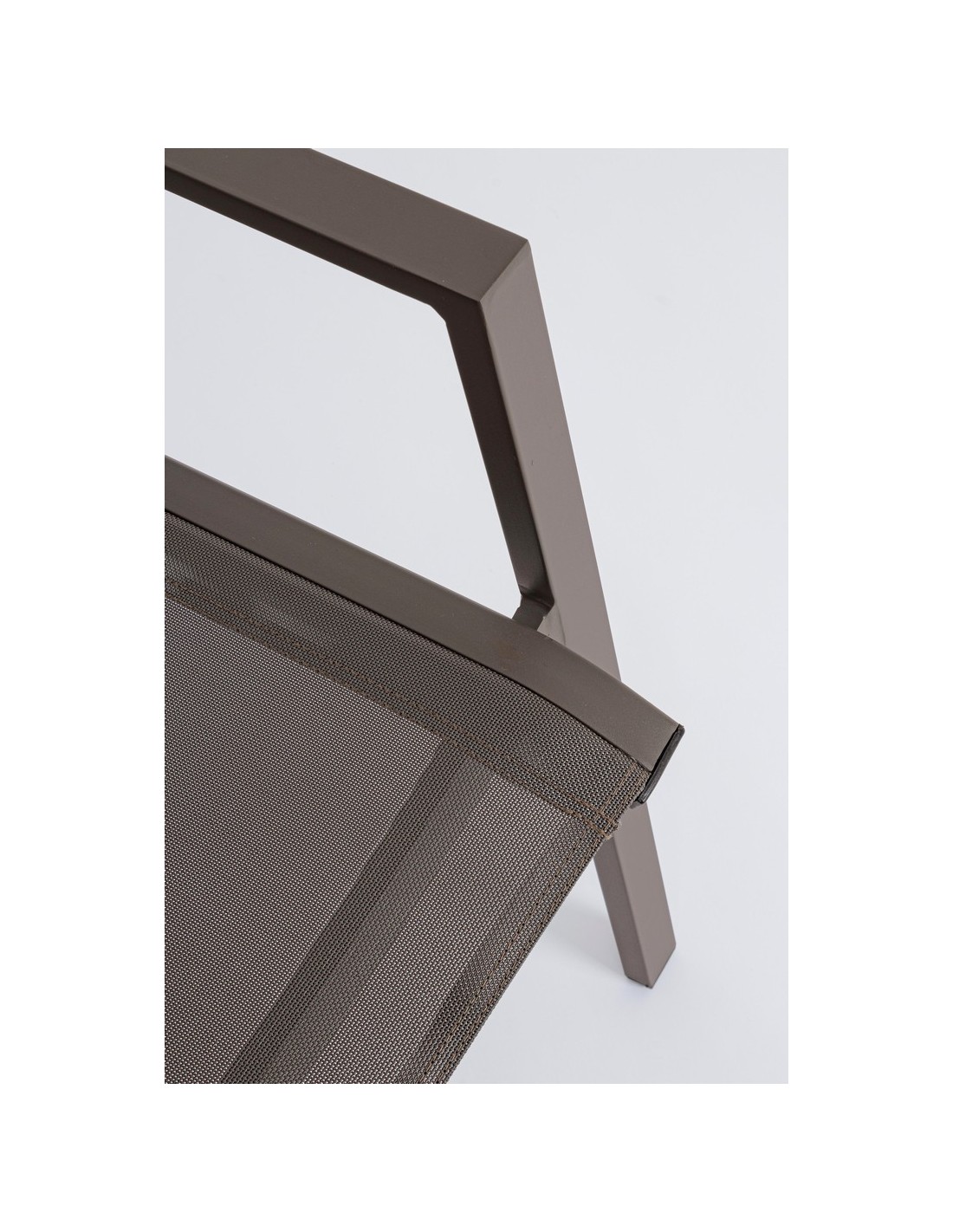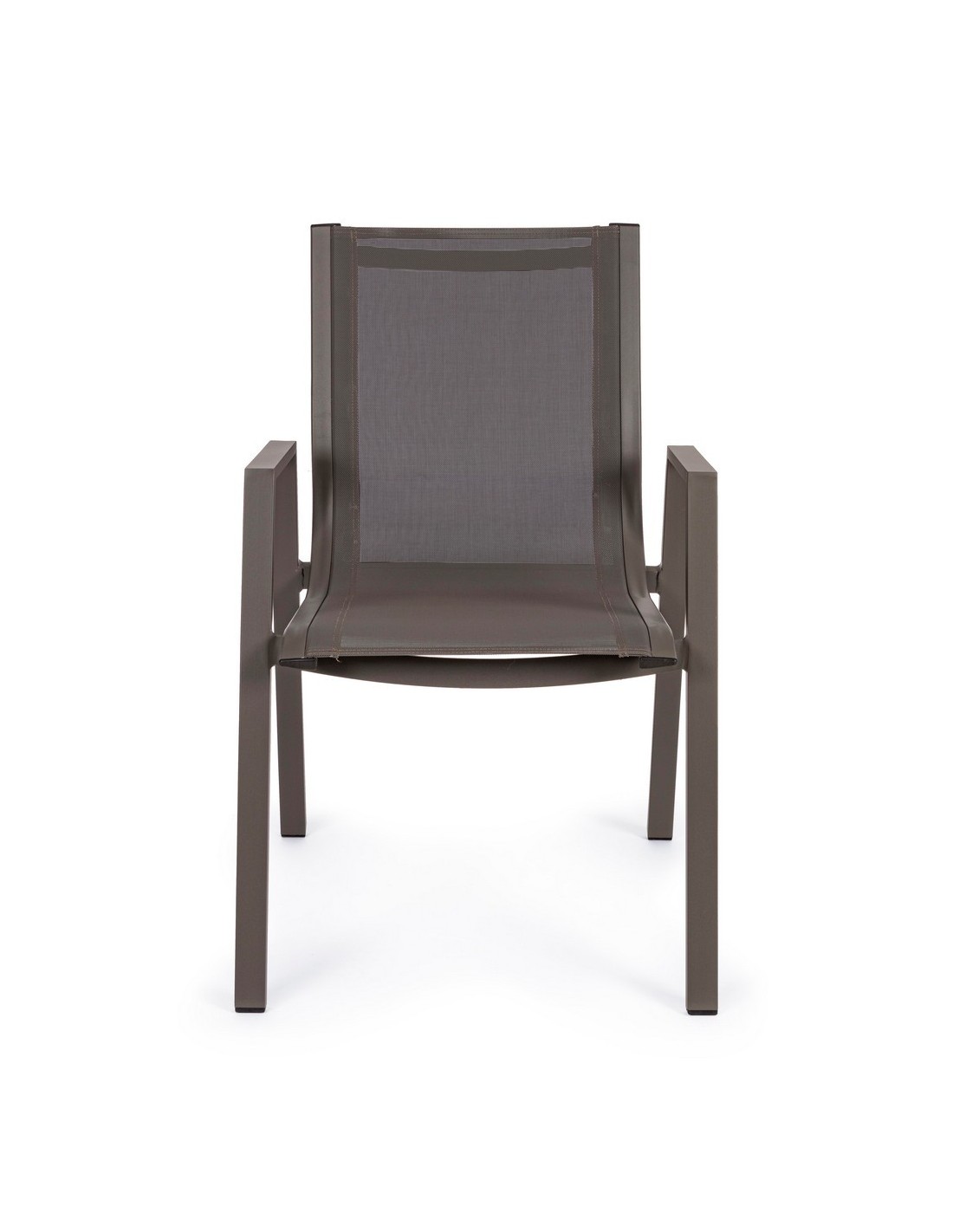Sæt med 6 havestole med armlæn, udført i et design af kaffefarvet pulverlakeret aluminium og textilene. Stolen måler 88 cm i højden over ryggen og 44 cm i siddehøjden.