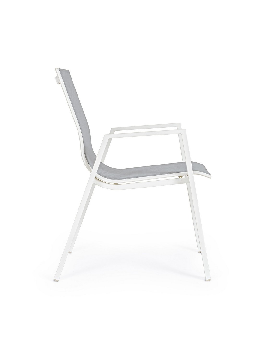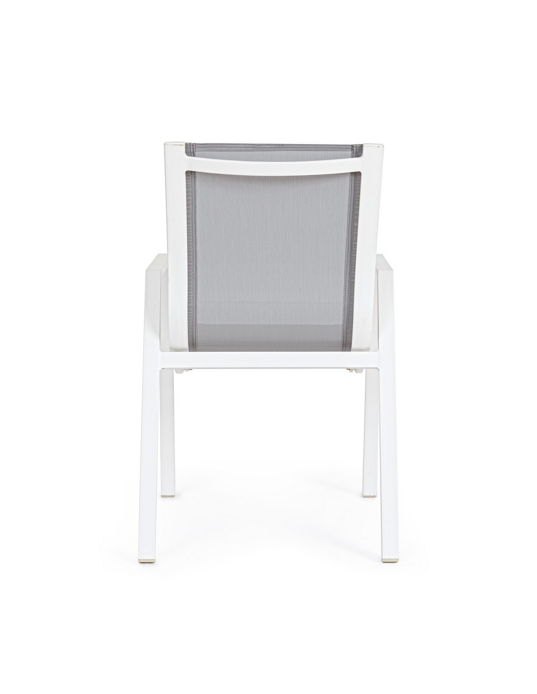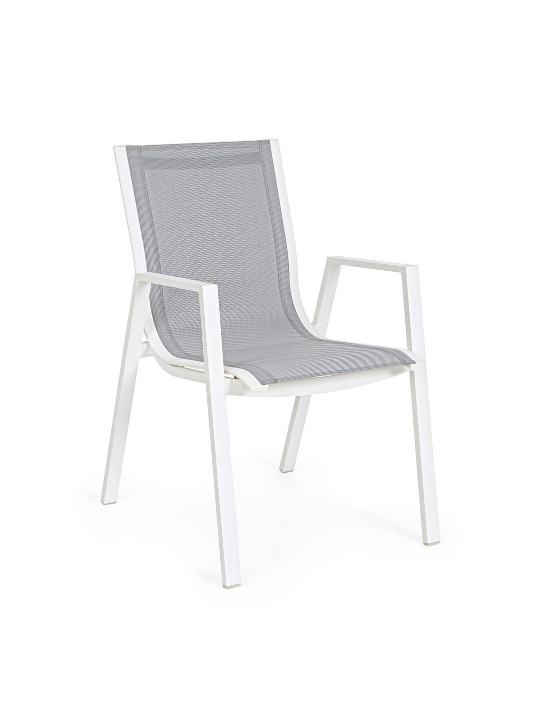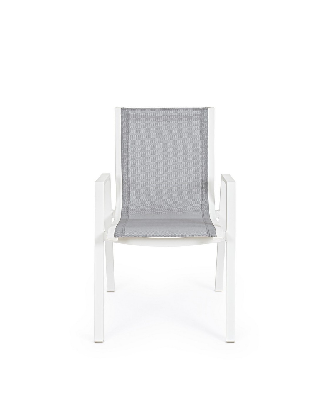 Sæt med 6 havestole med armlæn, udført i et design af hvid pulverlakeret aluminium og grå textilene. Stolen måler 88 cm i højden over ryggen og 44 cm i siddehøjden.