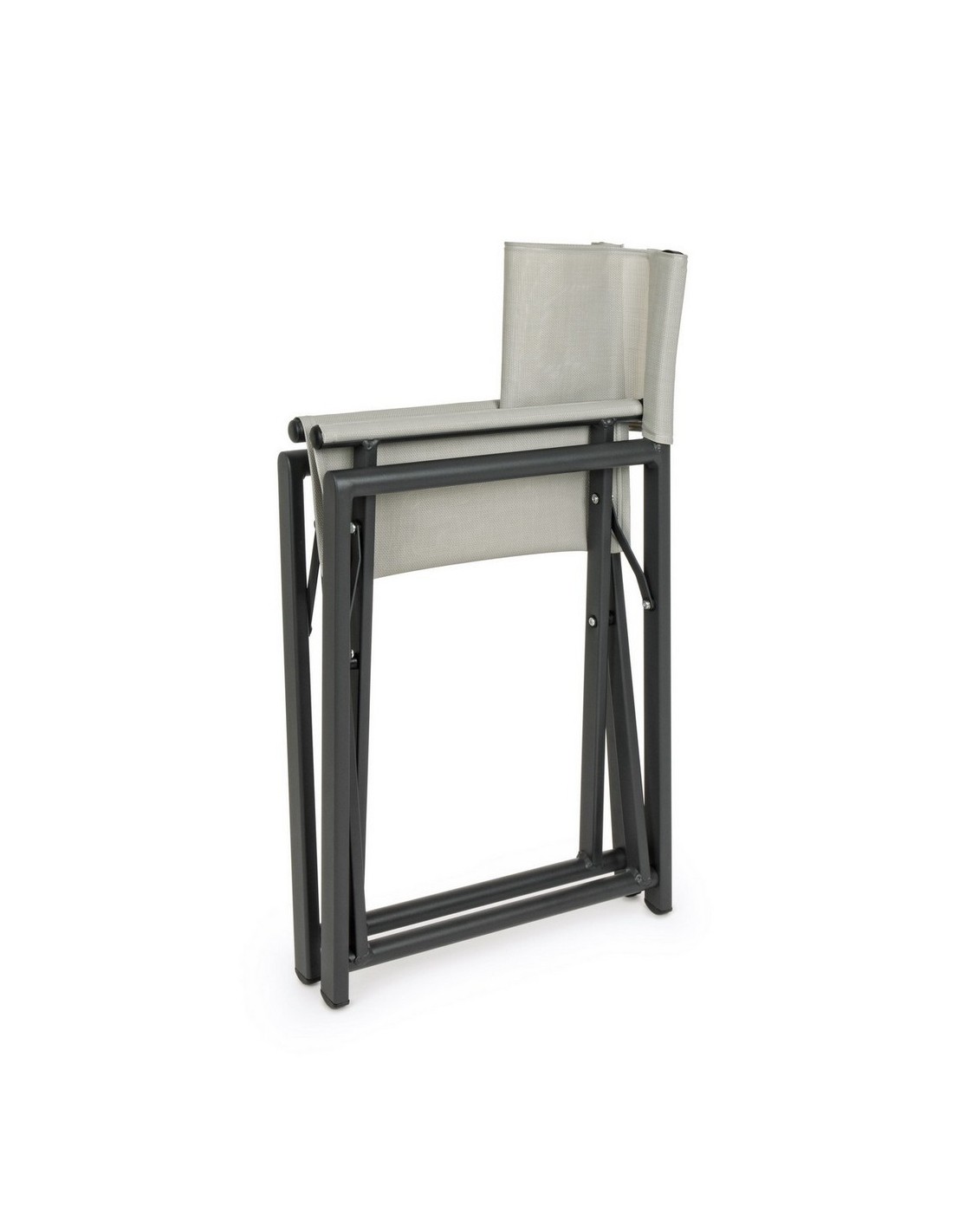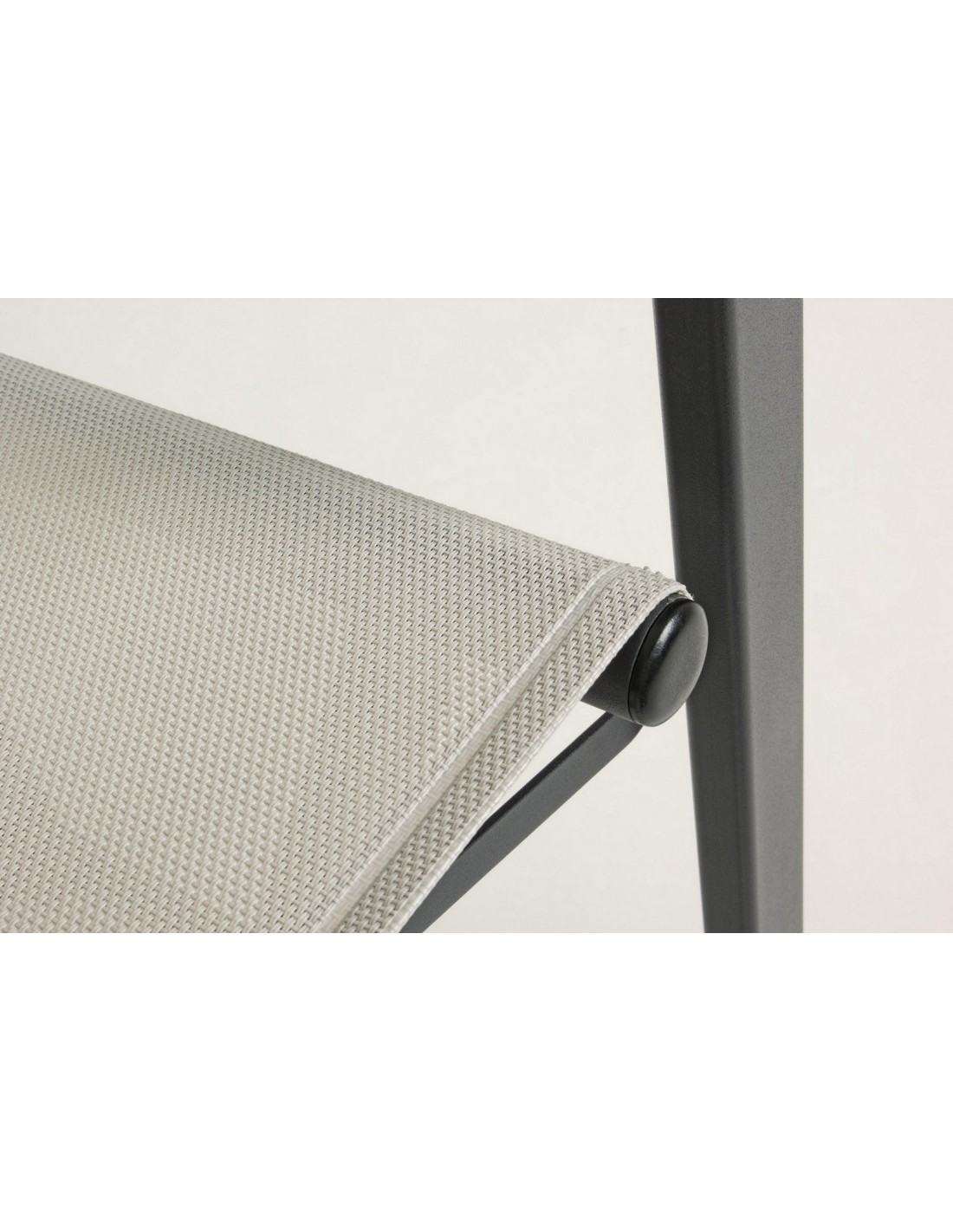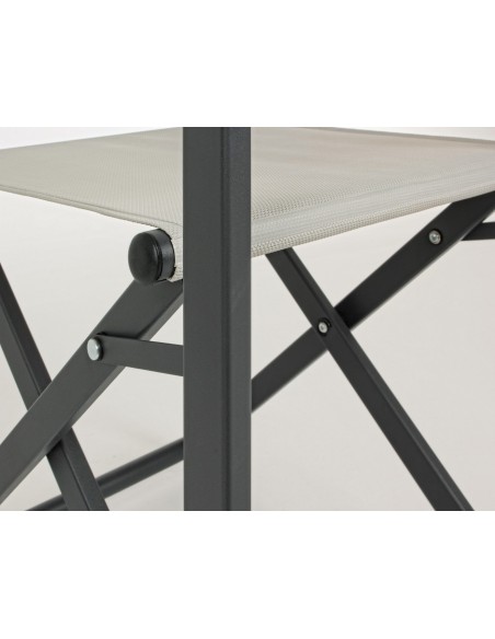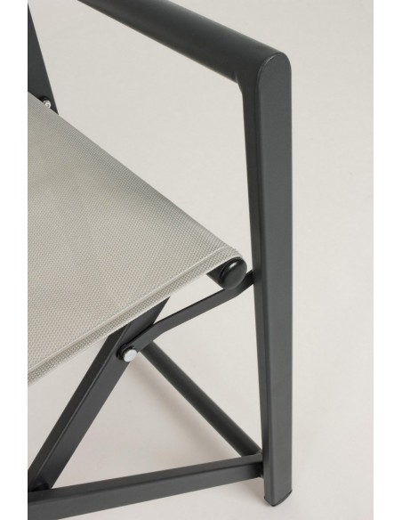 Sæt med 2 have klapstole udført i et design af charcoal pulverlakeret aluminium og stengrå textilene. Stolen måler 86 cm i højden over ryggen og 45 cm i siddehøjden.