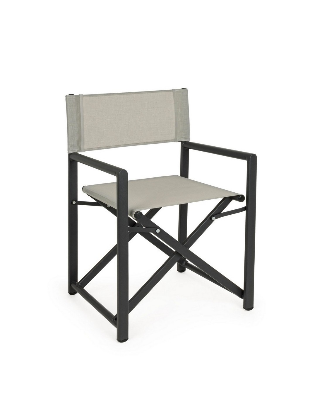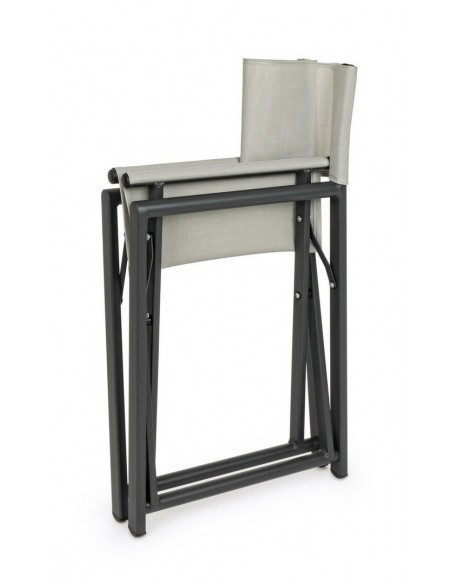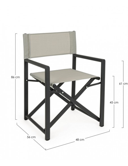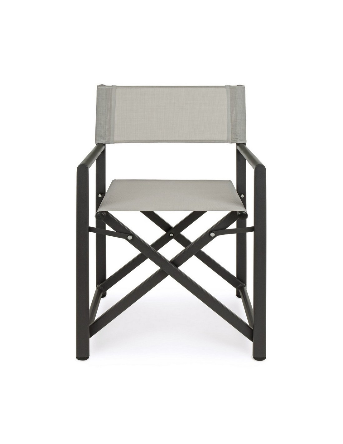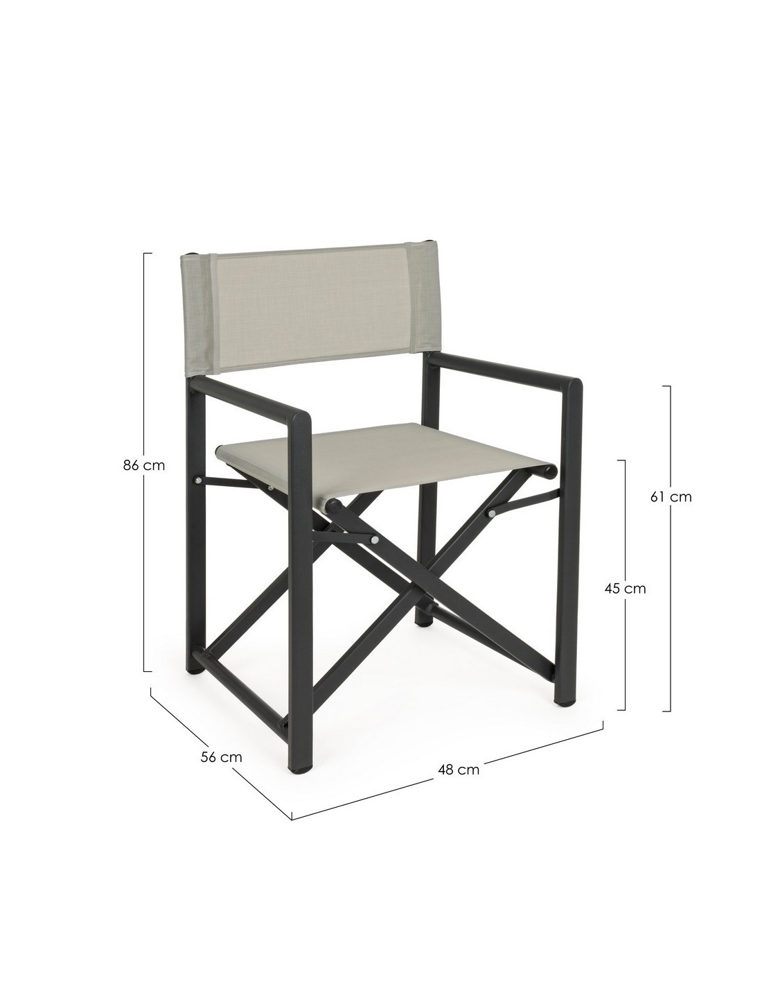 Sæt med 2 have klapstole udført i et design af charcoal pulverlakeret aluminium og stengrå textilene. Stolen måler 86 cm i højden over ryggen og 45 cm i siddehøjden.