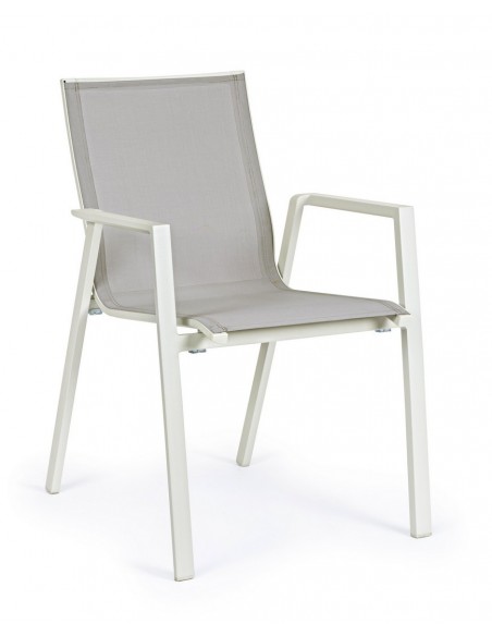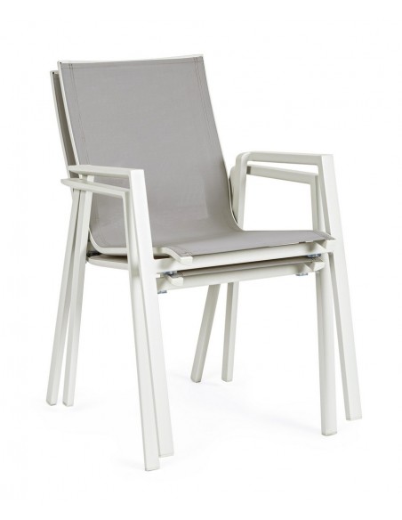 4 x Havestole med armlæn i aluminium og textilene H88 cm - Hvid/Svag grå