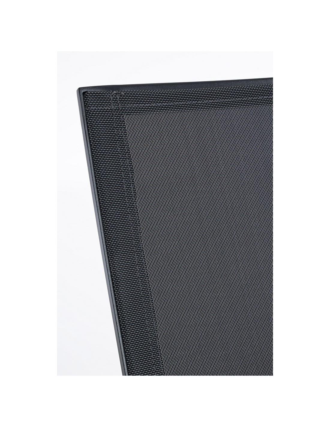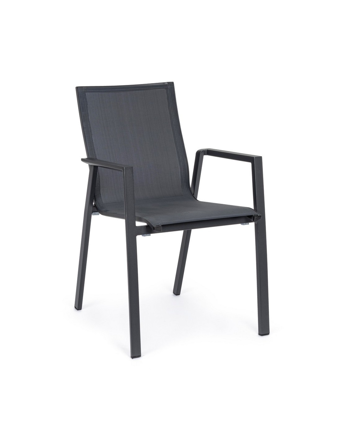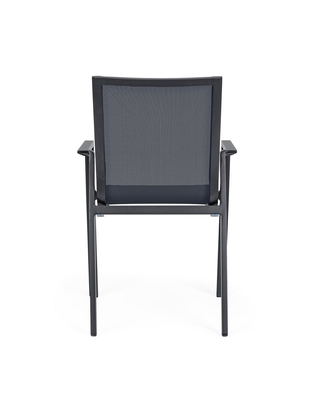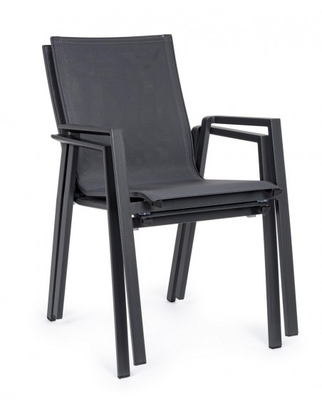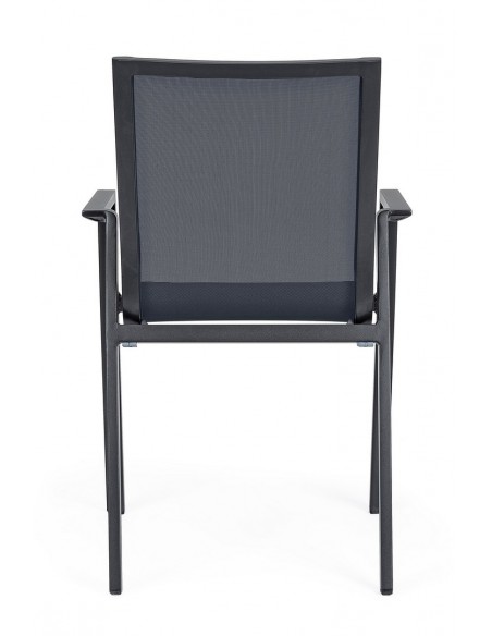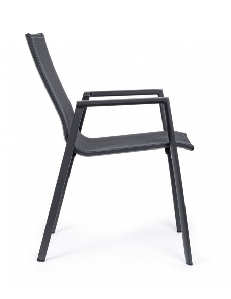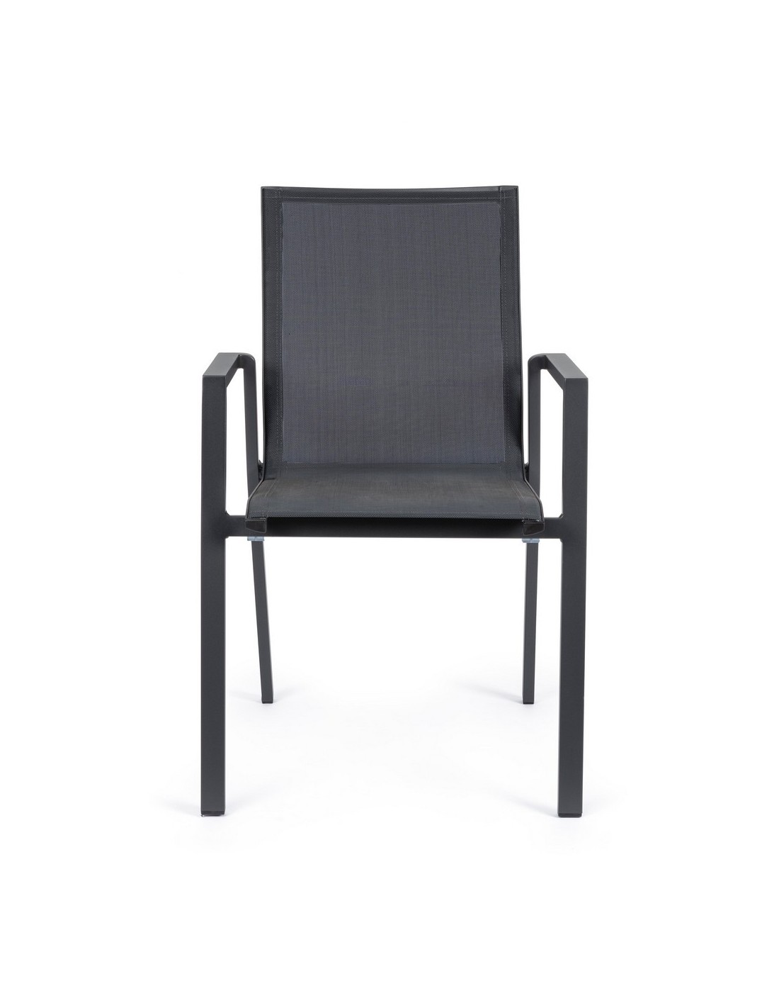 Sæt med 4 havestole med armlæn, udført i et design af charcoal pulverlakeret aluminium og textilene. Stolen måler 88 cm i højden over ryggen og 45 cm i siddehøjden.